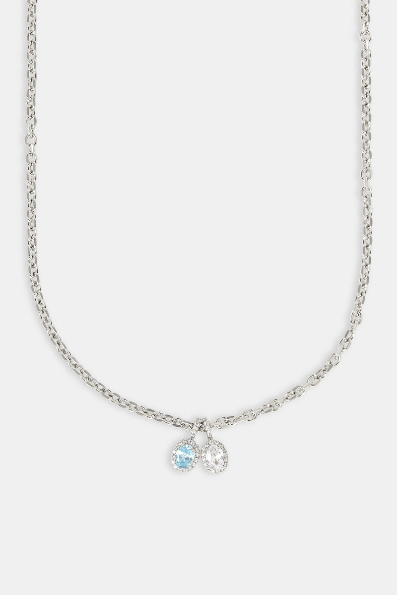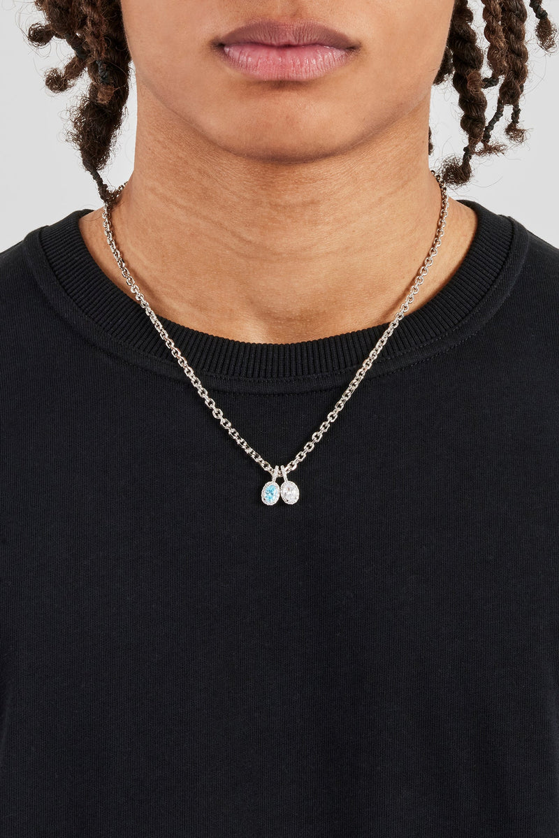 The Iced Blue & Clear Double Gemstone Necklace pairs a vibrant blue stone with a crisp clear gem, both iced out with sparkling CZs for max shine. It’s that perfect blend of bold colour and icy elegance, ready to elevate any fit.