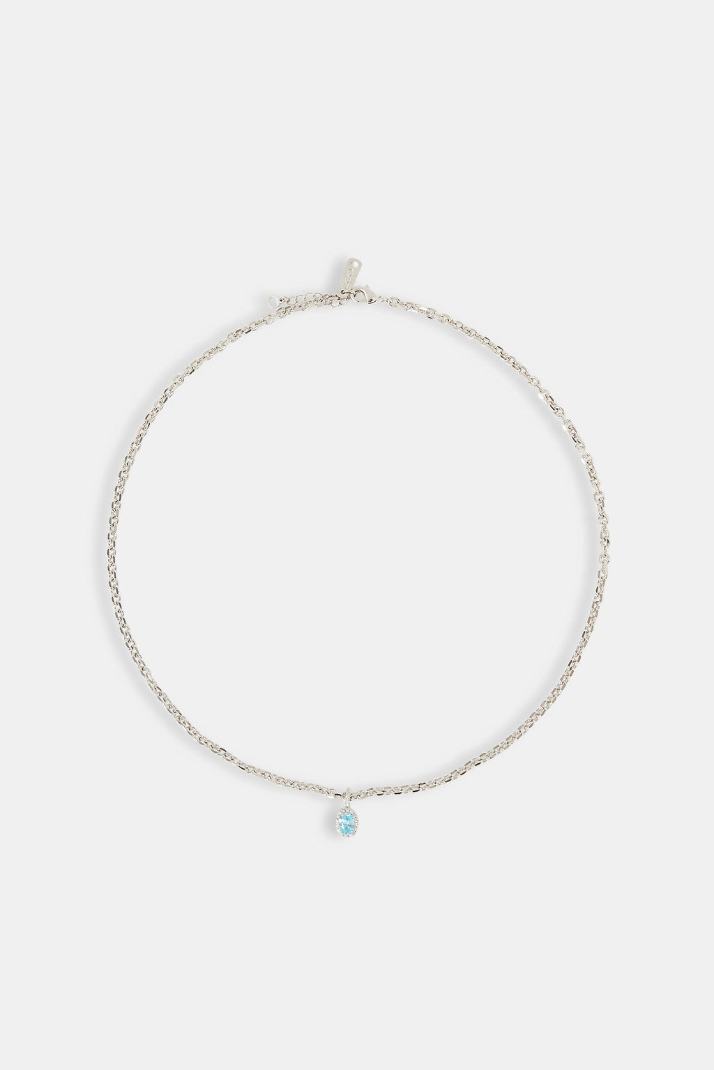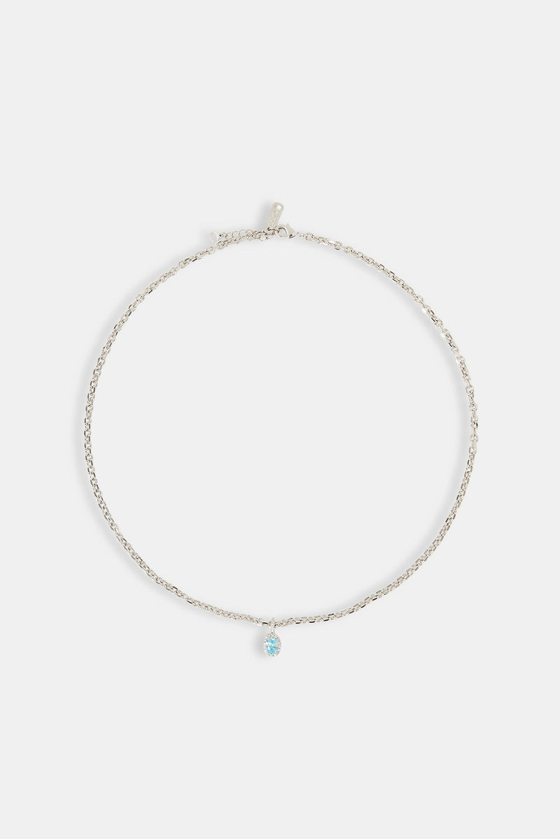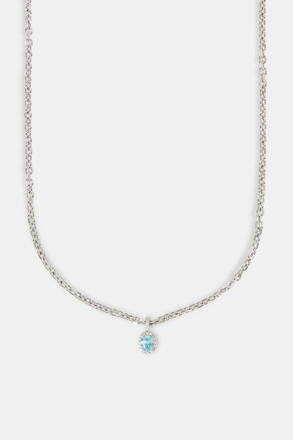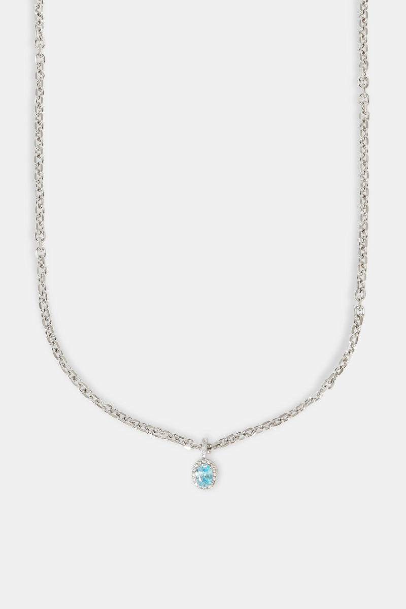 The Iced Blue Oval Gemstone Necklace features a stunning blue oval gemstone.