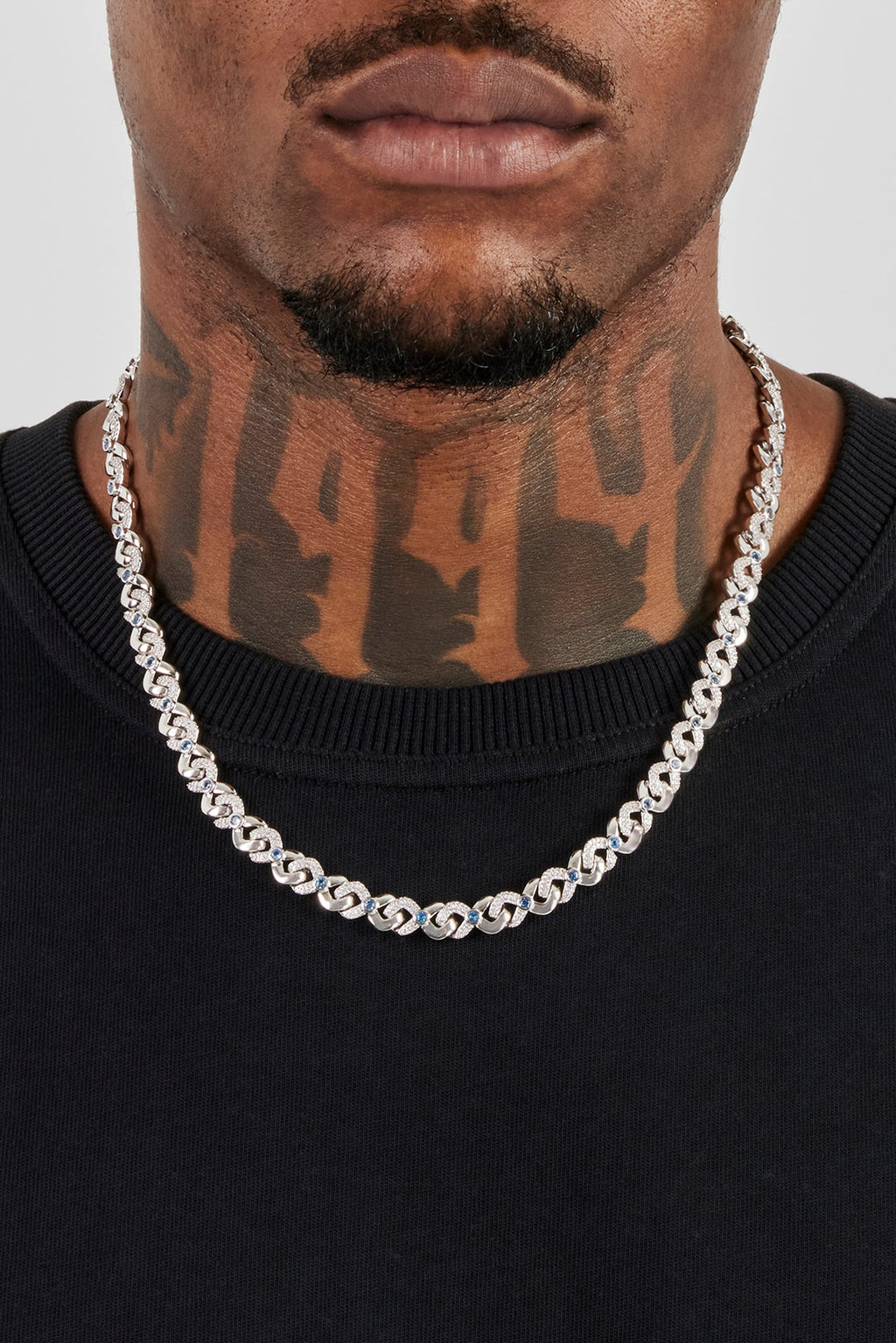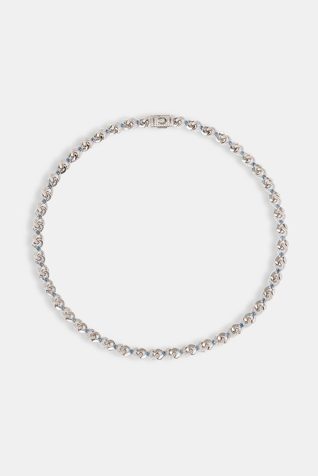 Want to elevate a classic look with big shine? Our 6mm Iced Blue Stone Infinity Chain is for you. Its continuous iced stones will catch light from all angles, to keep your neck dancing all day and night.
