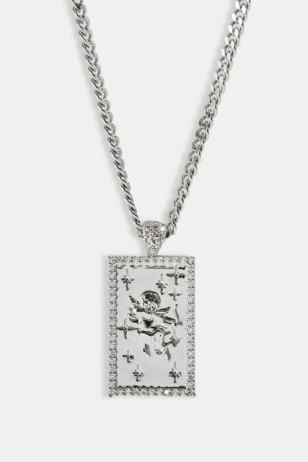 Our Iced Edge Cherub Pendant Necklace goes hard. Perfect to stack with a tennis chain. Shine correct.