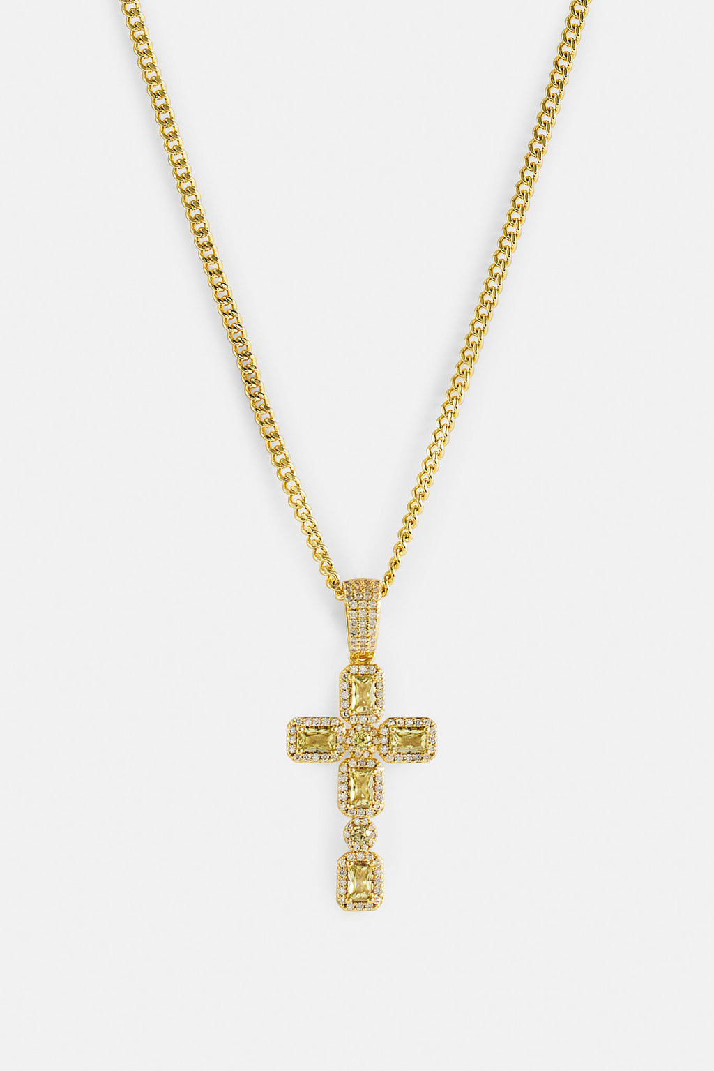 Iced Green Gemstone Cross Cuban Necklace - 40mm