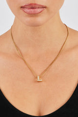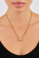 These new 12mm Letter Pendant charms in gold sparkle from all angles as they're flooded with iced out stones. These fit perfectly on our Micro Cuban Chain.