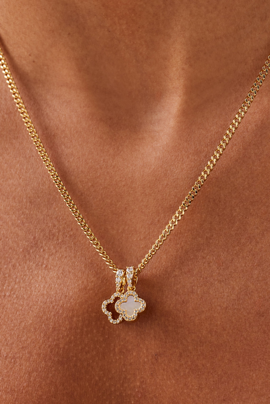 The Iced & Mother Of Pearl Double Motif Necklace is an easy to style, it brings a laid-back pop of colour and style to your everyday look.
