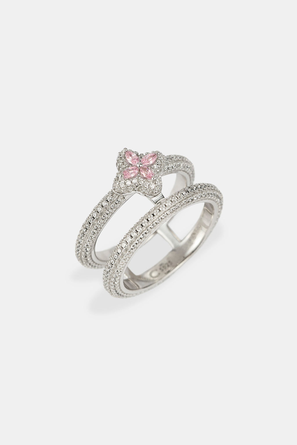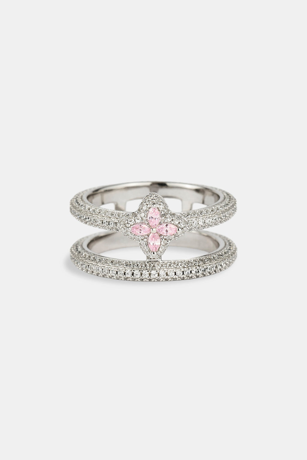 Iced Motif Double Band Row Ring - White