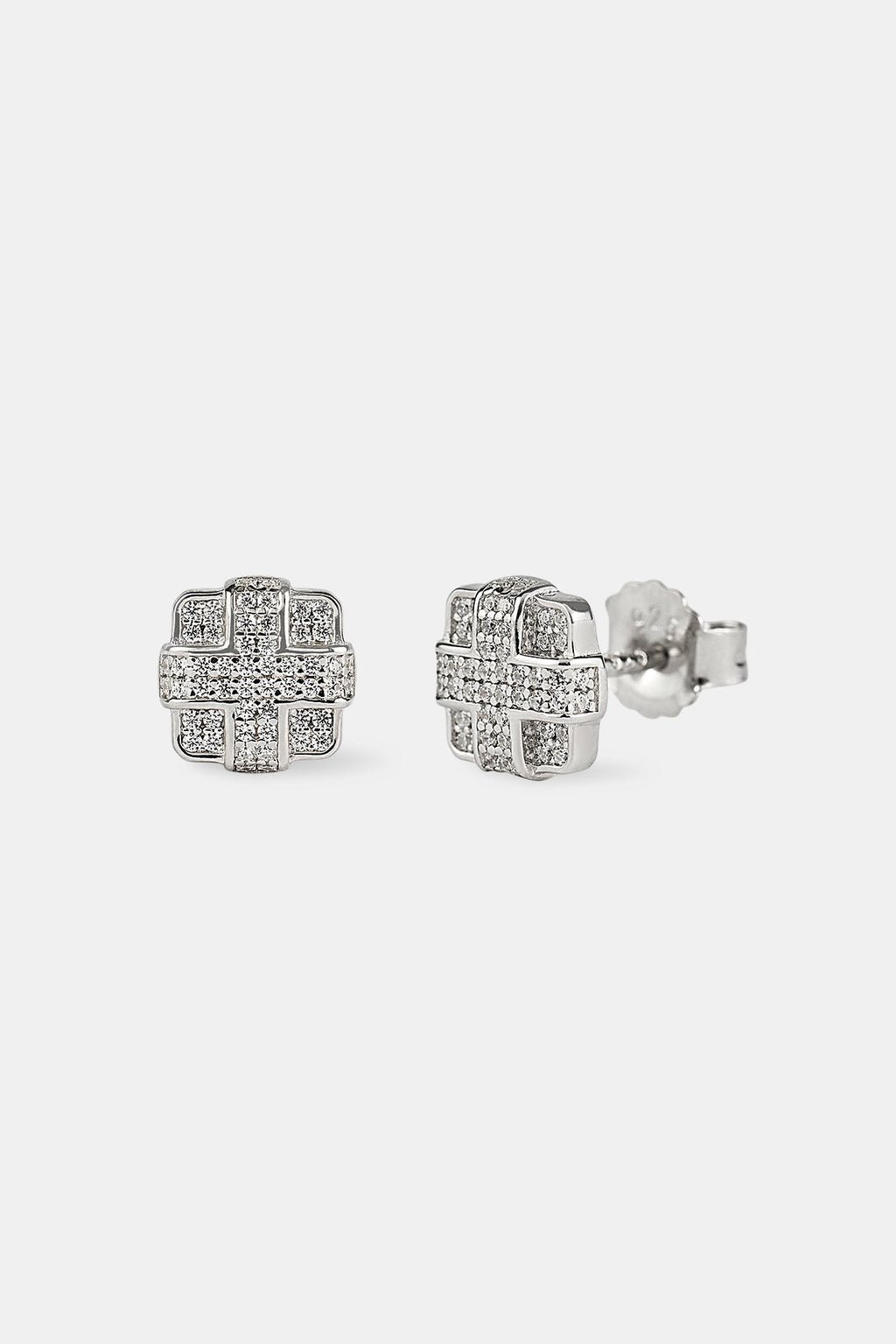 Our Iced Pave Cross Square Studs brings a different vibe to your earring collection. For the ultimate flex, add in a chain or bracelet.