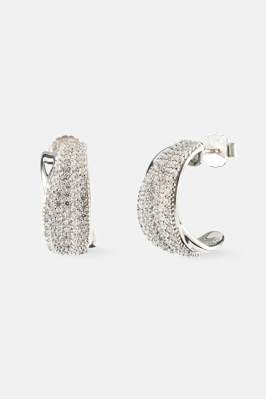 Our Iced & Polished Cross Over Hoops bring a different vibe to your earring collection. For the ultimate flex, add in a chain or bracelet.