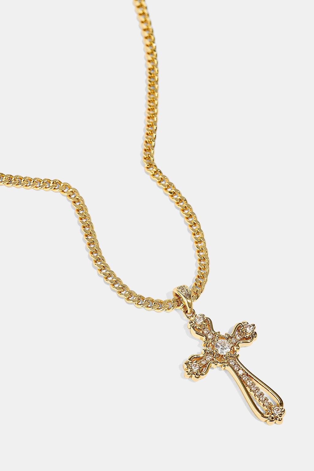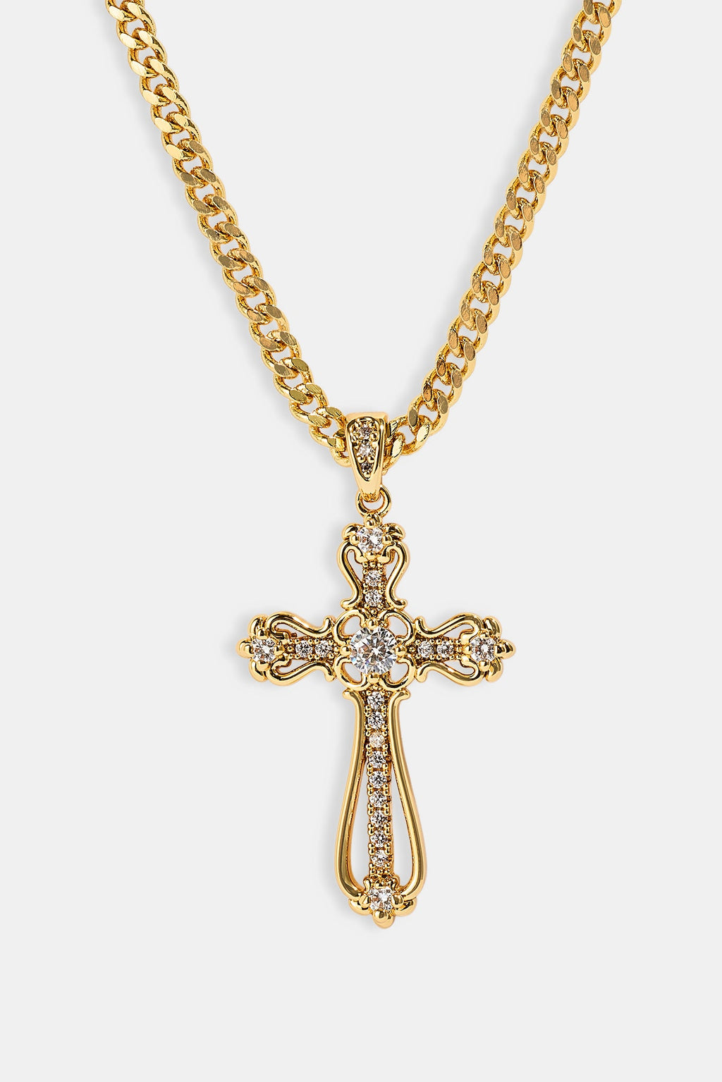 Our Iced Round Edge Cross Necklace goes hard. Perfect to stack with a tennis chain. Shine correct.