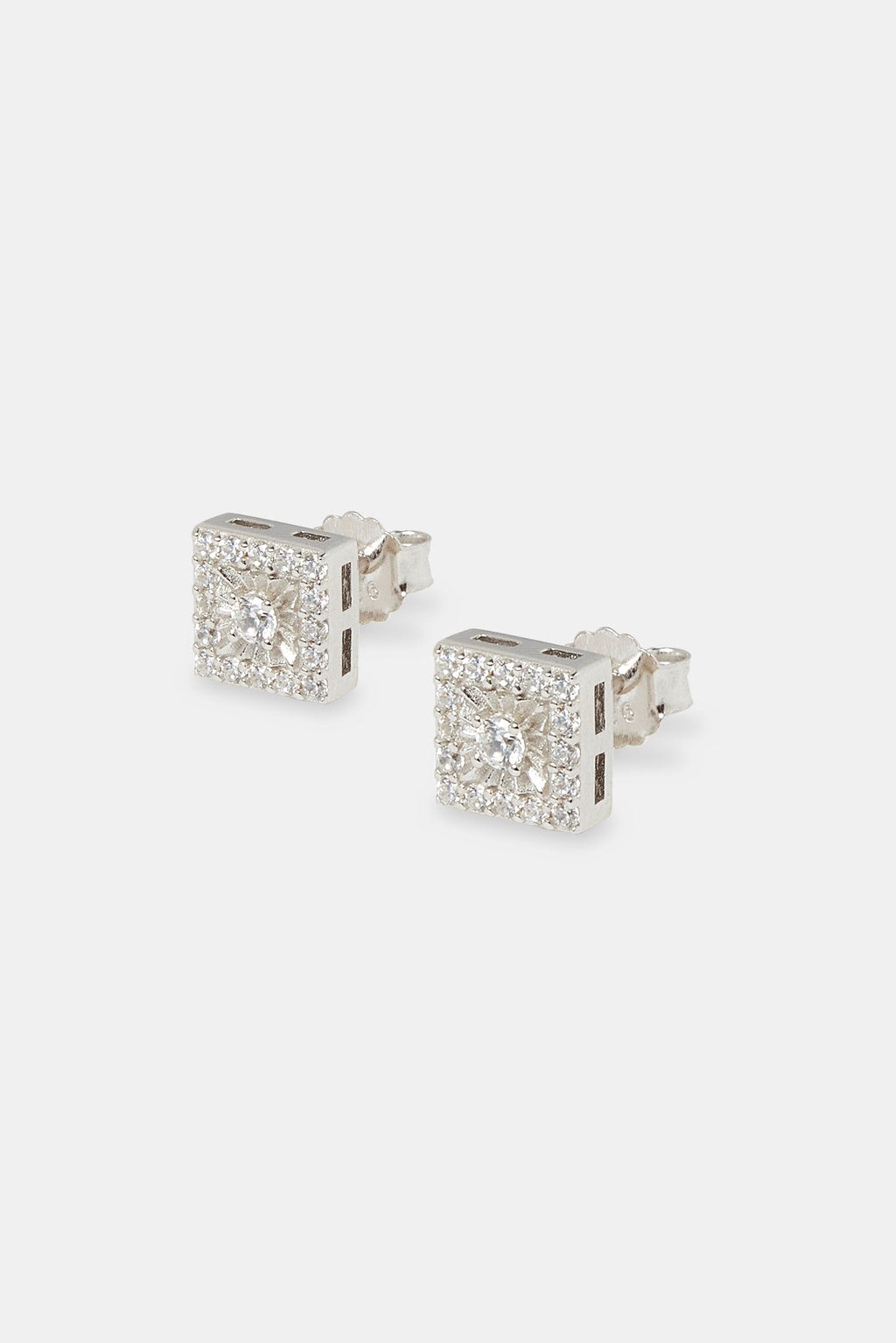 Iced Square Centre Stone Stud Earrings - 8mm