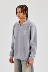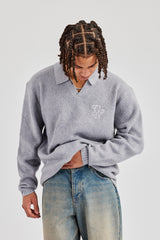Grey Knitted Collared Sweat, relaxed fit in a soft touch knit.
