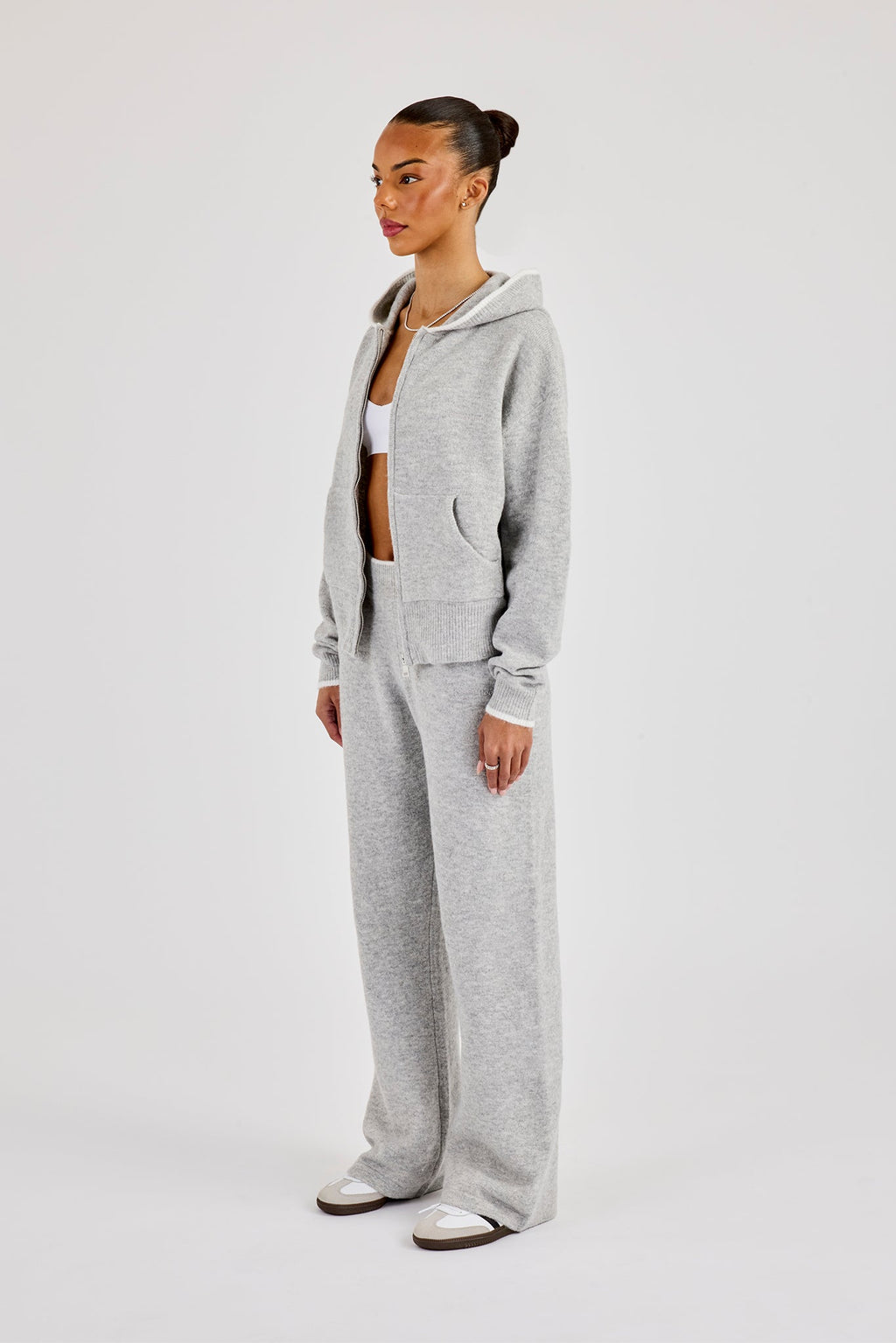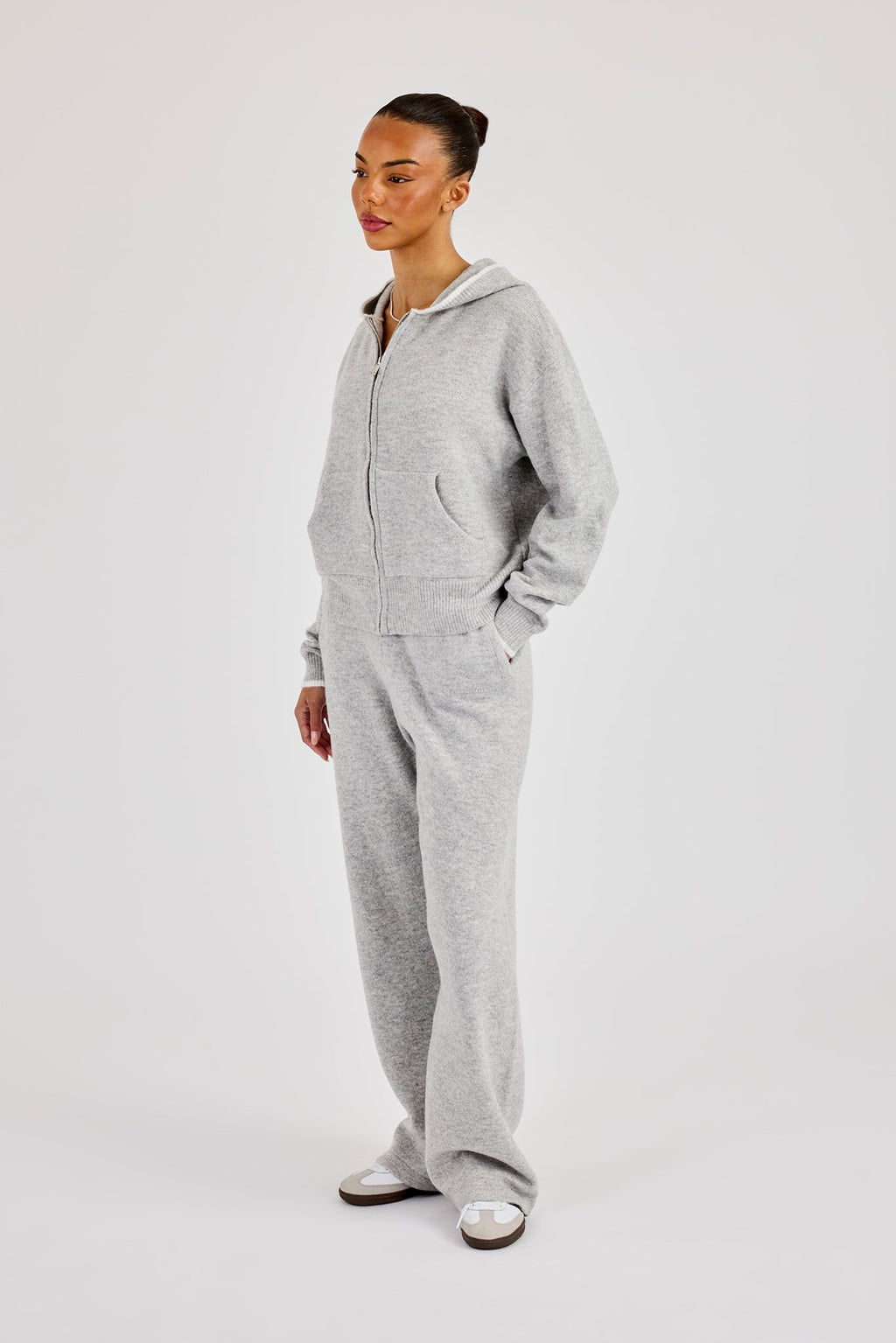 Grey knitted jogger in a soft touch knit with contrast tipping detail.