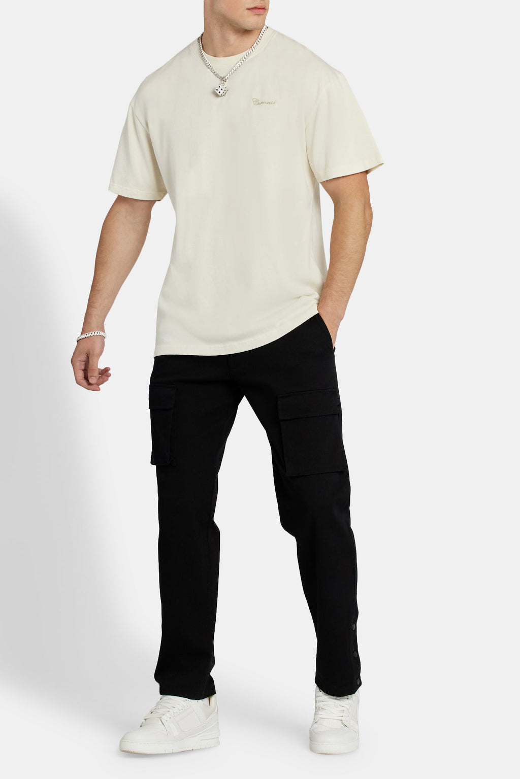 Faux Layer Embroidered T-Shirt - Ash Grey