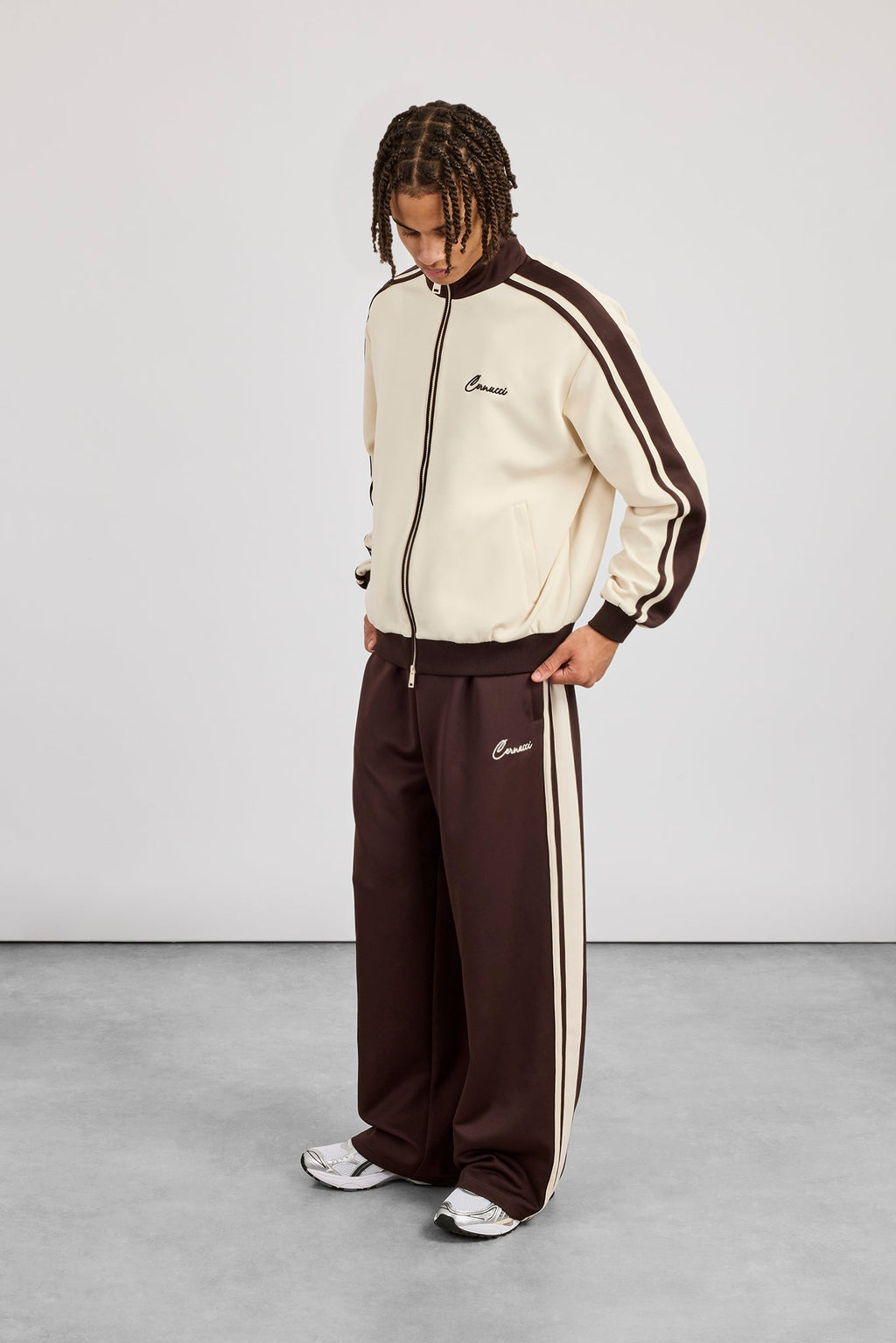 Contrast detail track pant with elasticated waistband jogging trouser in a soft poly with contrast taping and branding. Pair with our matching zip through to complete the look.
