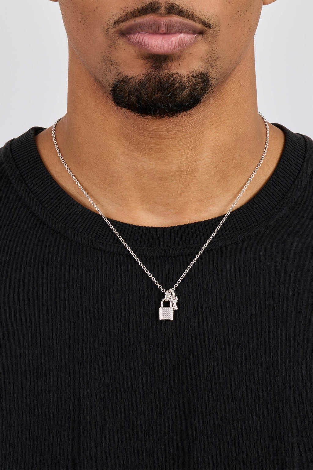 Our Iced Padlock & Key Necklace goes hard. Perfect to stack with a tennis chain. Shine correct.