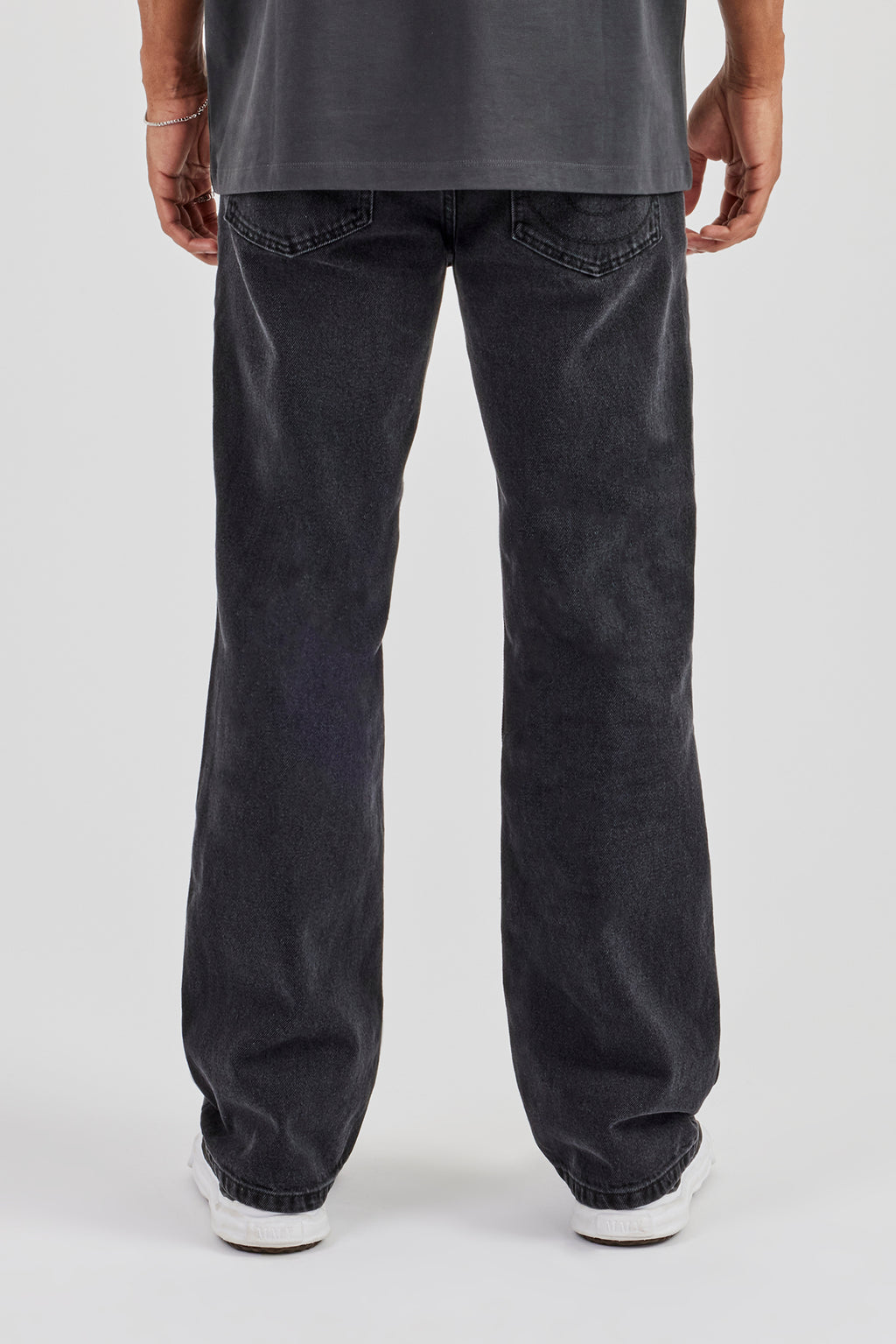 Black washed jeans, in rigid cotton denim. Relaxed fit finished with branded trims.