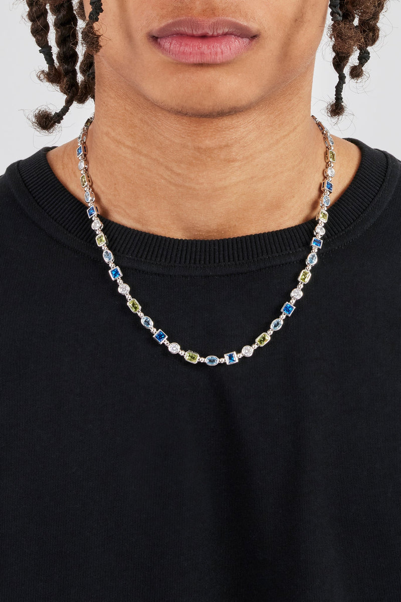 Switch it up with a chain that doesn’t follow the rules. Featuring a mix of gemstone cuts and colours, this one brings the energy—bold, bright, and impossible to miss.