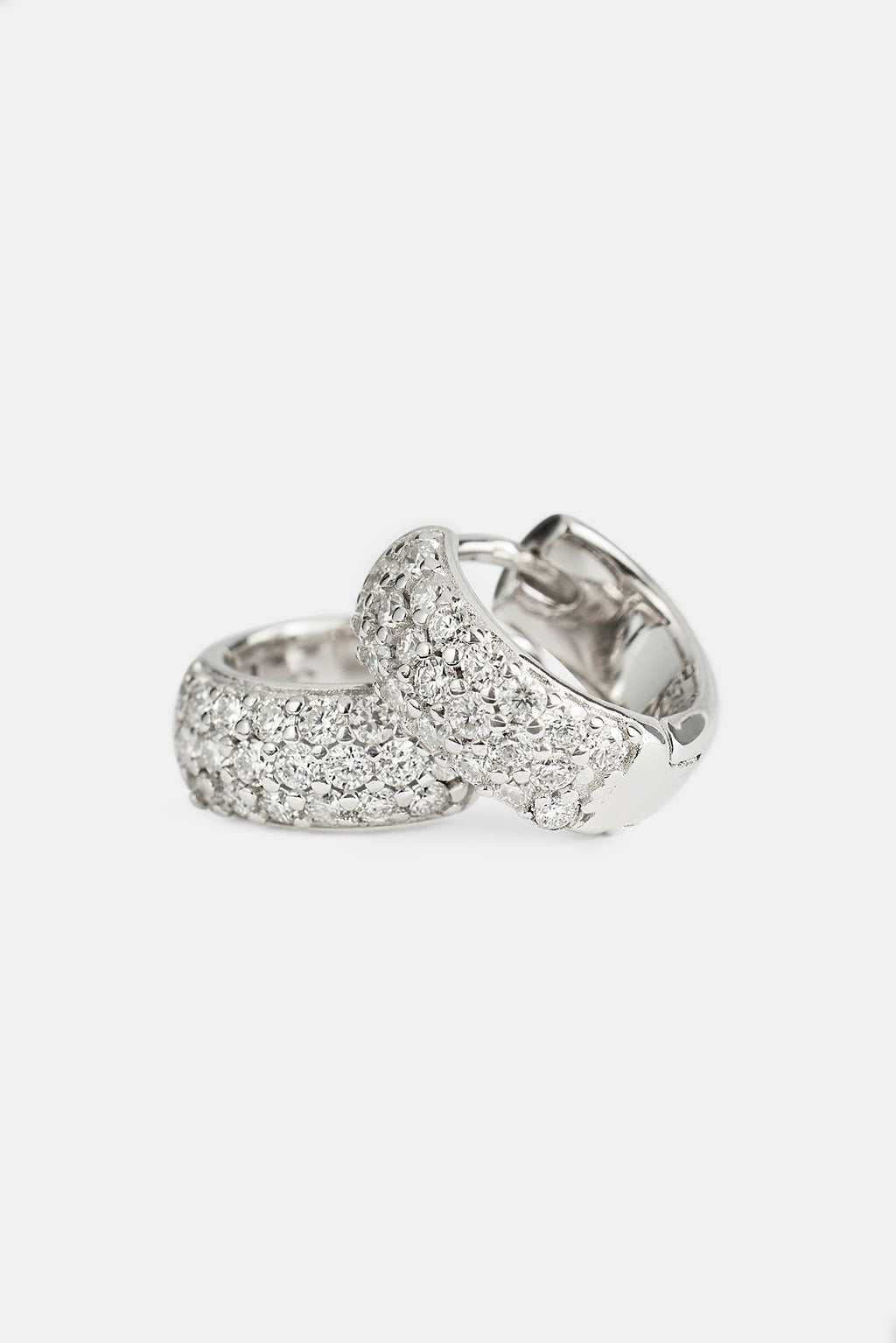 The Moissanite Pave Huggie Earrings - 12mm bring that clean shine to any fit. Easy to style, whether you’re dressing it up or keeping it casual.