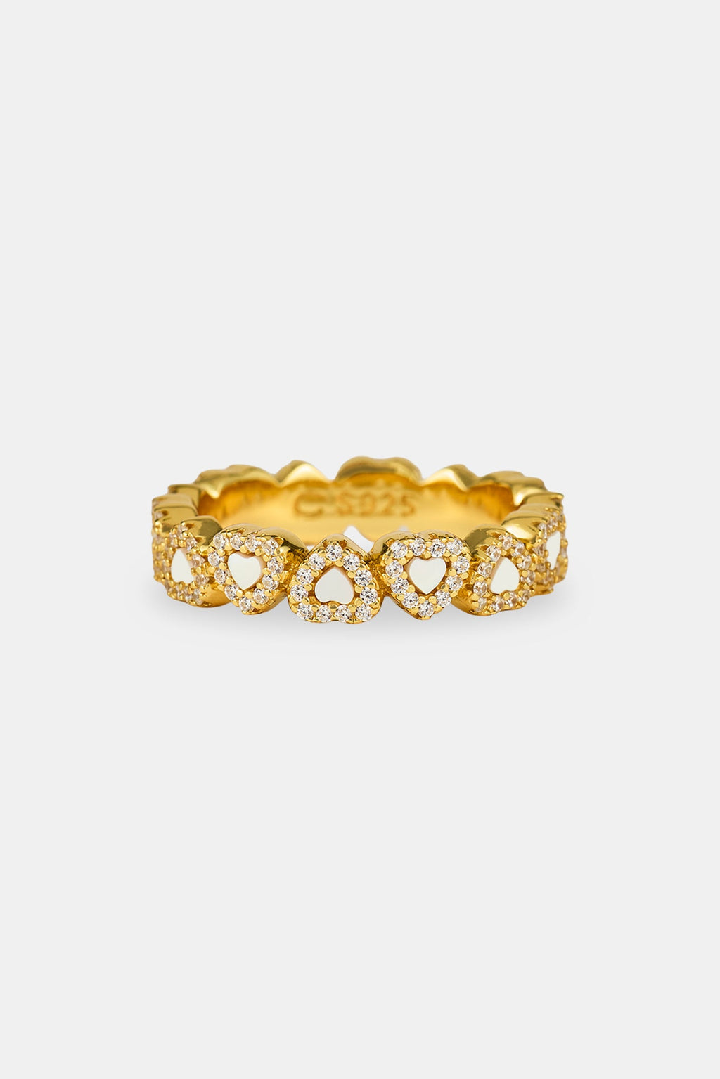 Want to step up your ring game? We custom designed this Mother Of Pearl Heart Band Ring to shine and reflect light from all angles. This unique ring will set you apart from the rest.
