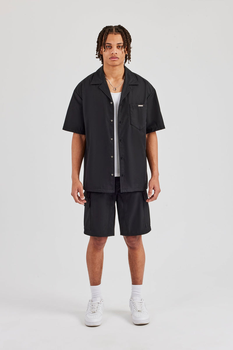 Black nylon cargo short in a regular fit, pair with our matching shirt to complete the look.