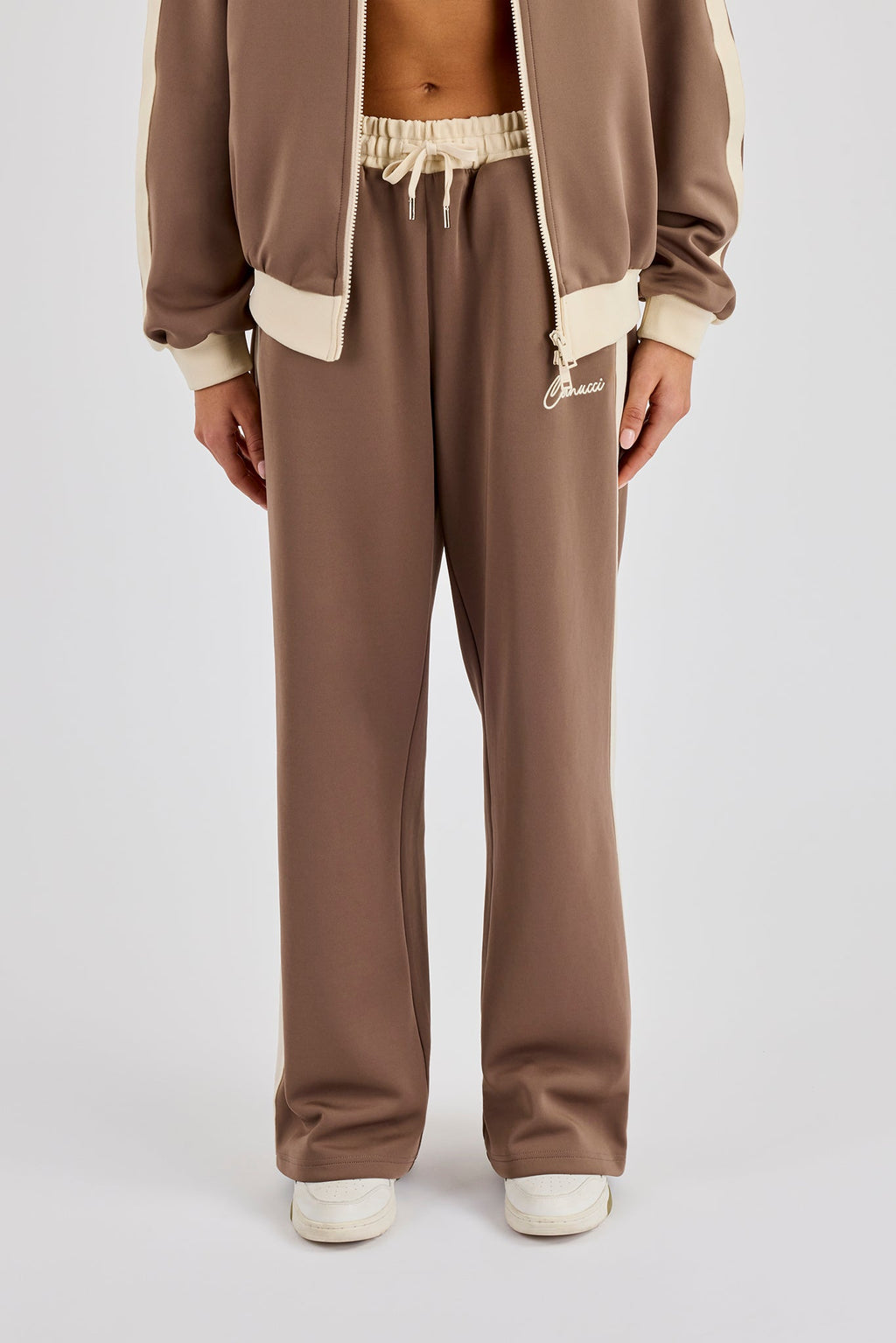 Contrast detail track pant with elasticated waistband jogging trouser in a soft poly with contrast taping and branding.