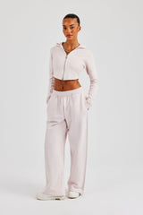 Light Pink joggers in a wide fit finished with self fabric applique branding across the back. Premium heavyweight soft touch jersey.