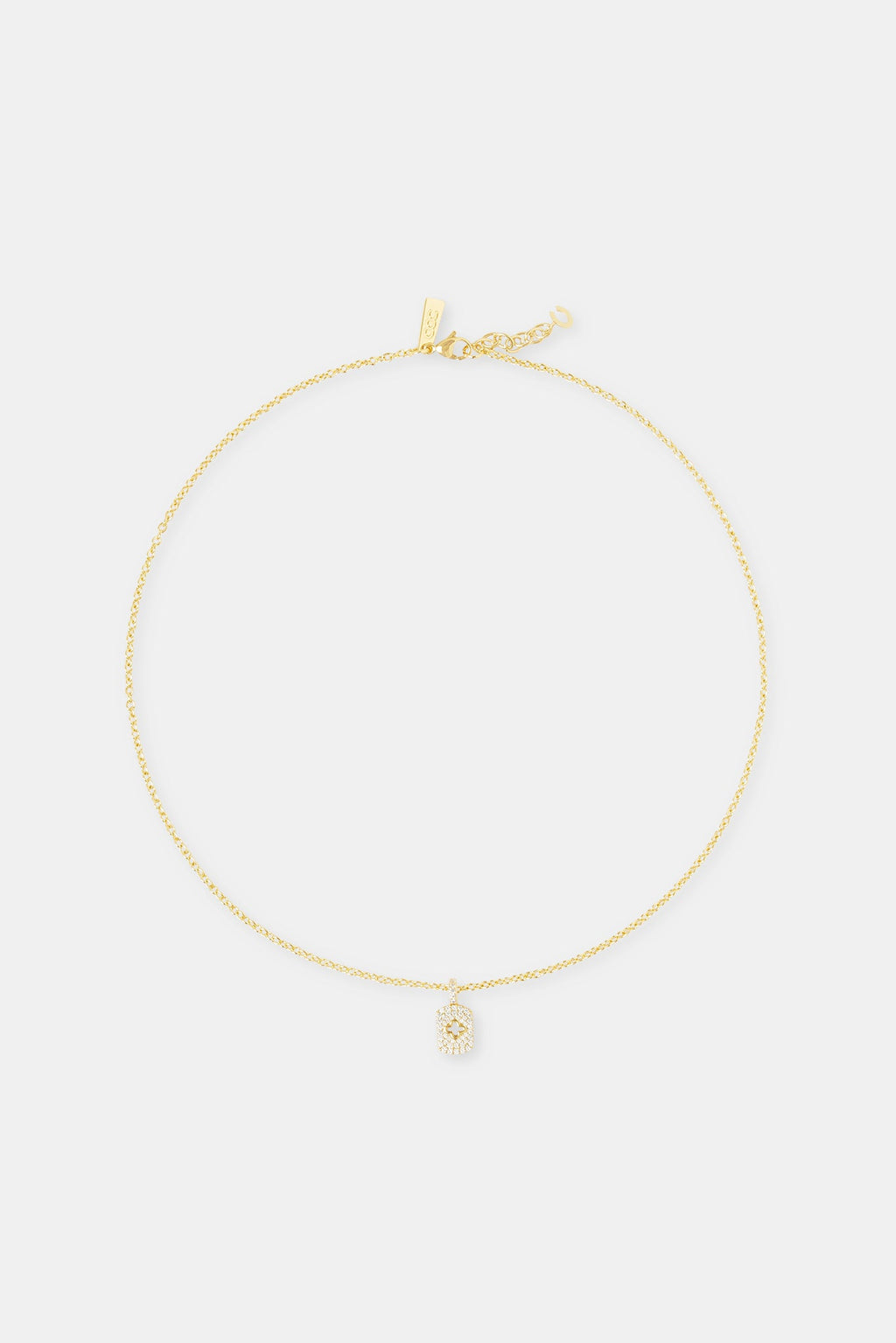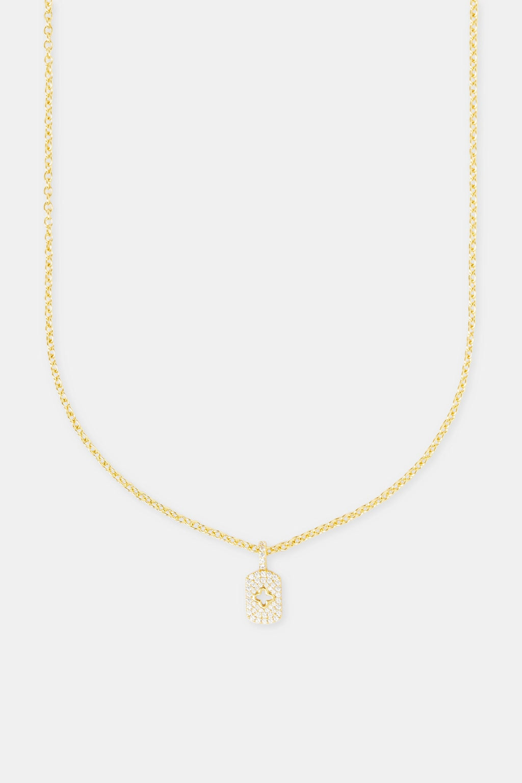 The Pavé Cut Out Motif Tag Necklace keeps it simple but sharp. Iced detailing meets a clean cut-out design, bringing a subtle flex that hits different. Easy to layer, easy to style.