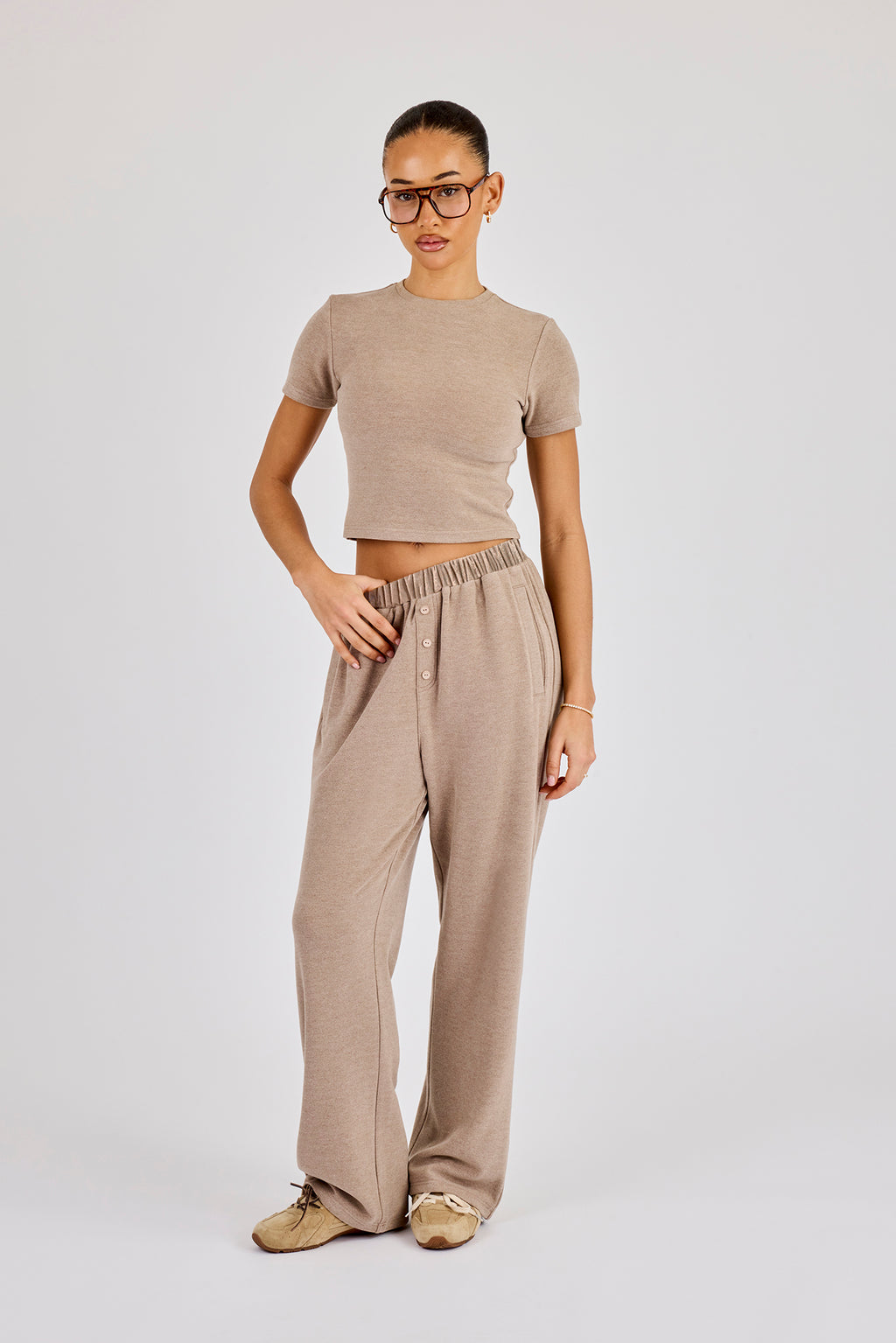 Peached soft touch trousers with button detailing. Pair with the matching soft touch top to complete the look.