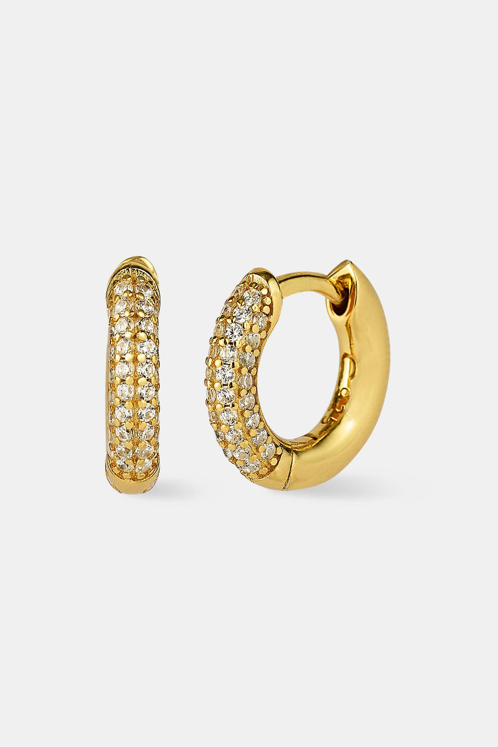 Our Polished & Iced Huggie Earrings go hard. Perfect to stack with a tennis chain. Shine correct.