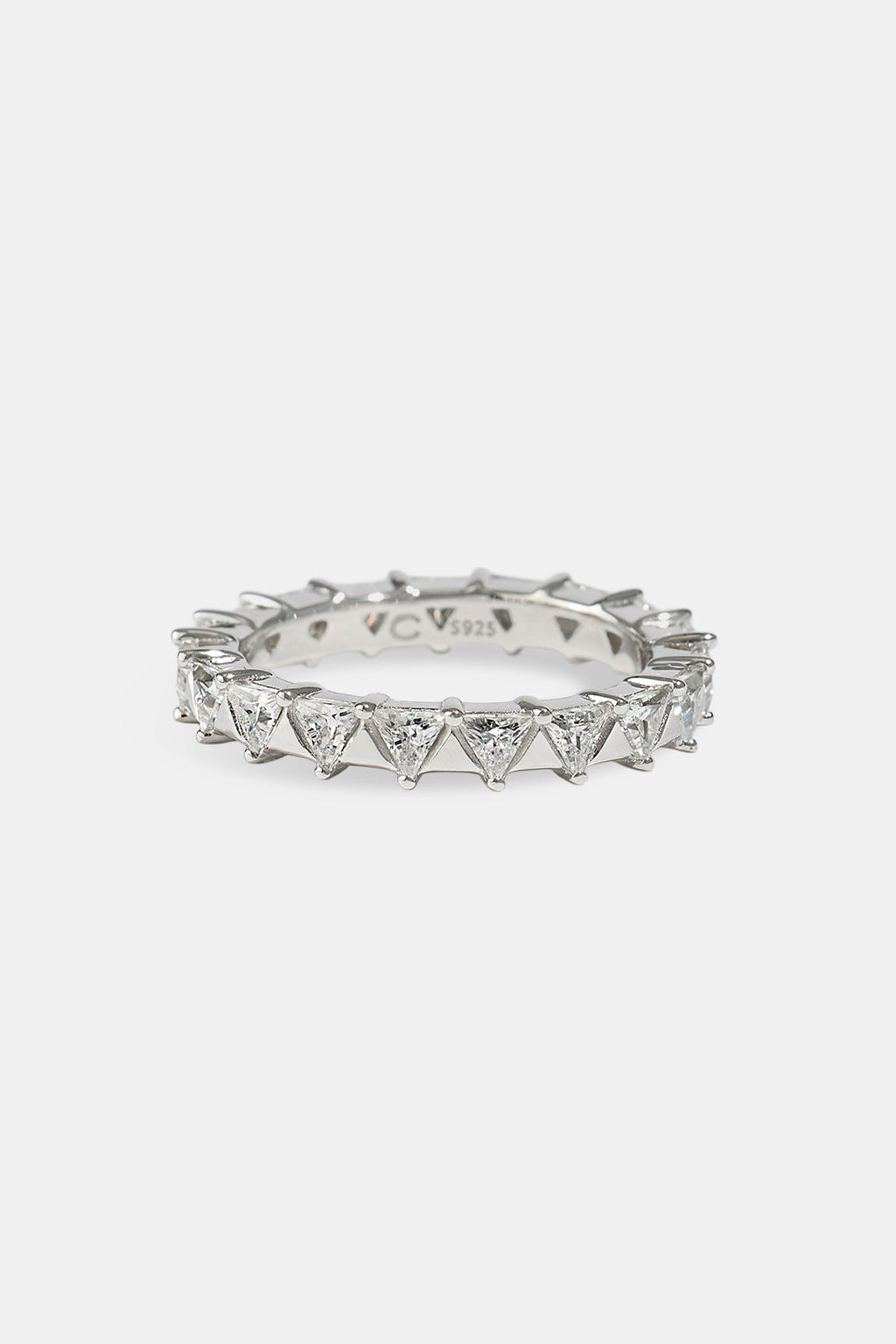Polished & Iced Triangle Ring - 3mm - White Gold