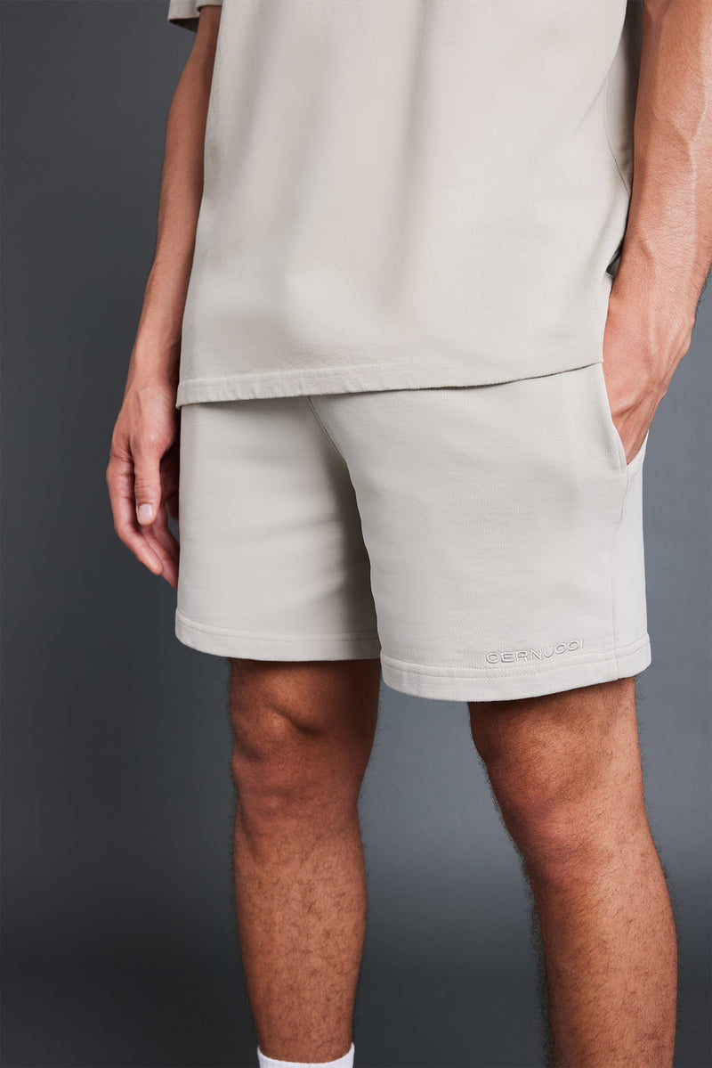 Cernucci Staples. Stone jersey shorts in a premium heavyweight soft touch cotton.