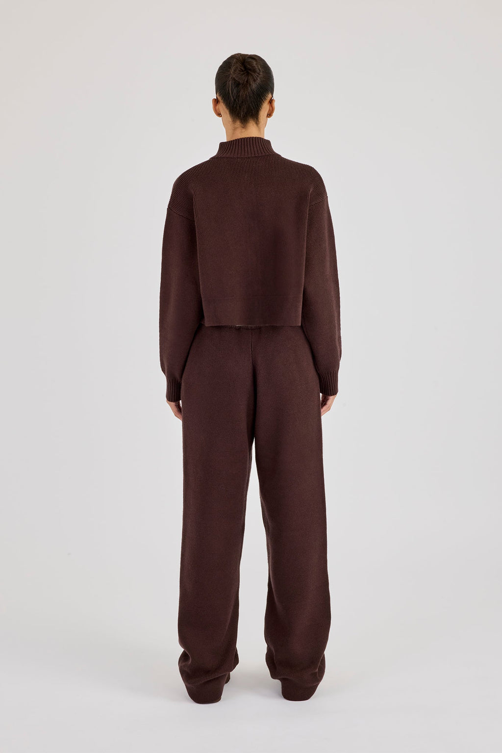 Cropped brown rib funnel neck in our premium heavyweight knit. Pair with our matching knitted joggers to complete the look.