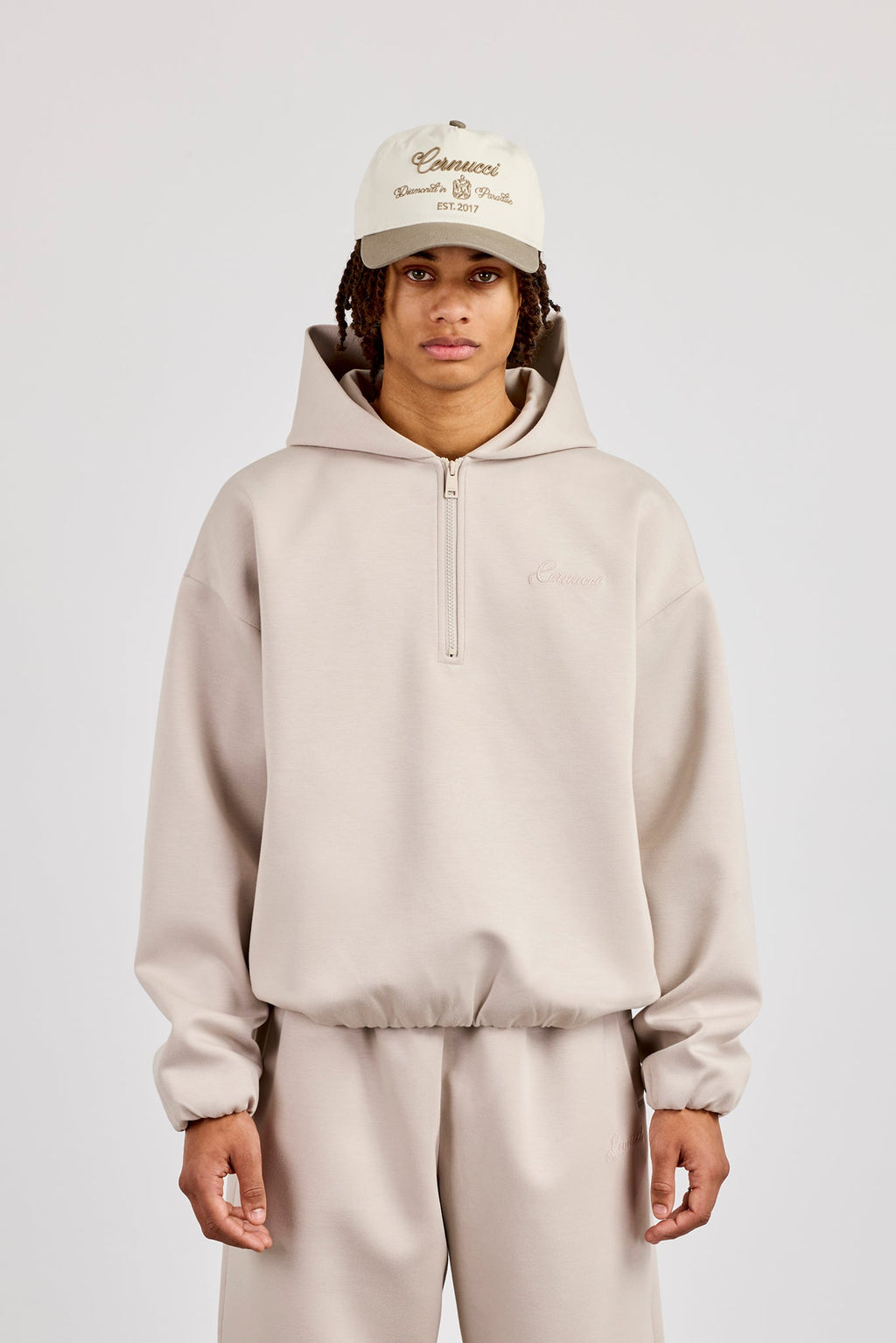 Light grey half zip scuba hoodie, made from soft touch premium scuba featuring. Pair with our matching trouser to complete the look.