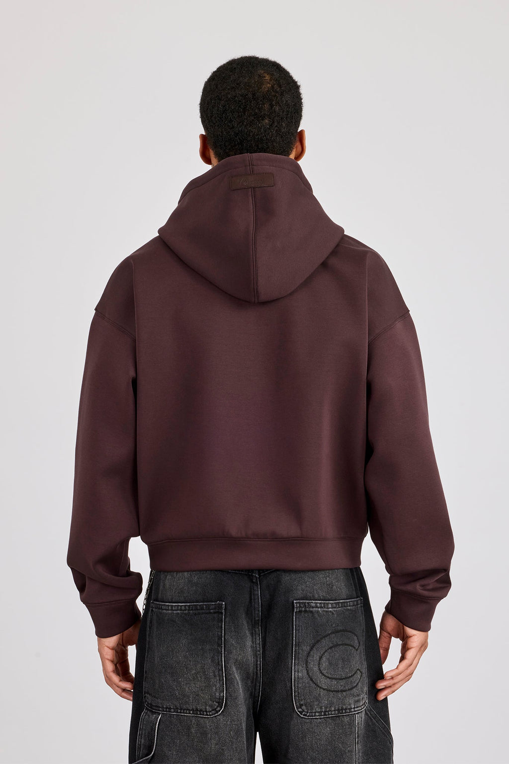 Dark brown zip through scuba hoodie, made from soft touch premium scuba featuring woven Cernucci tab