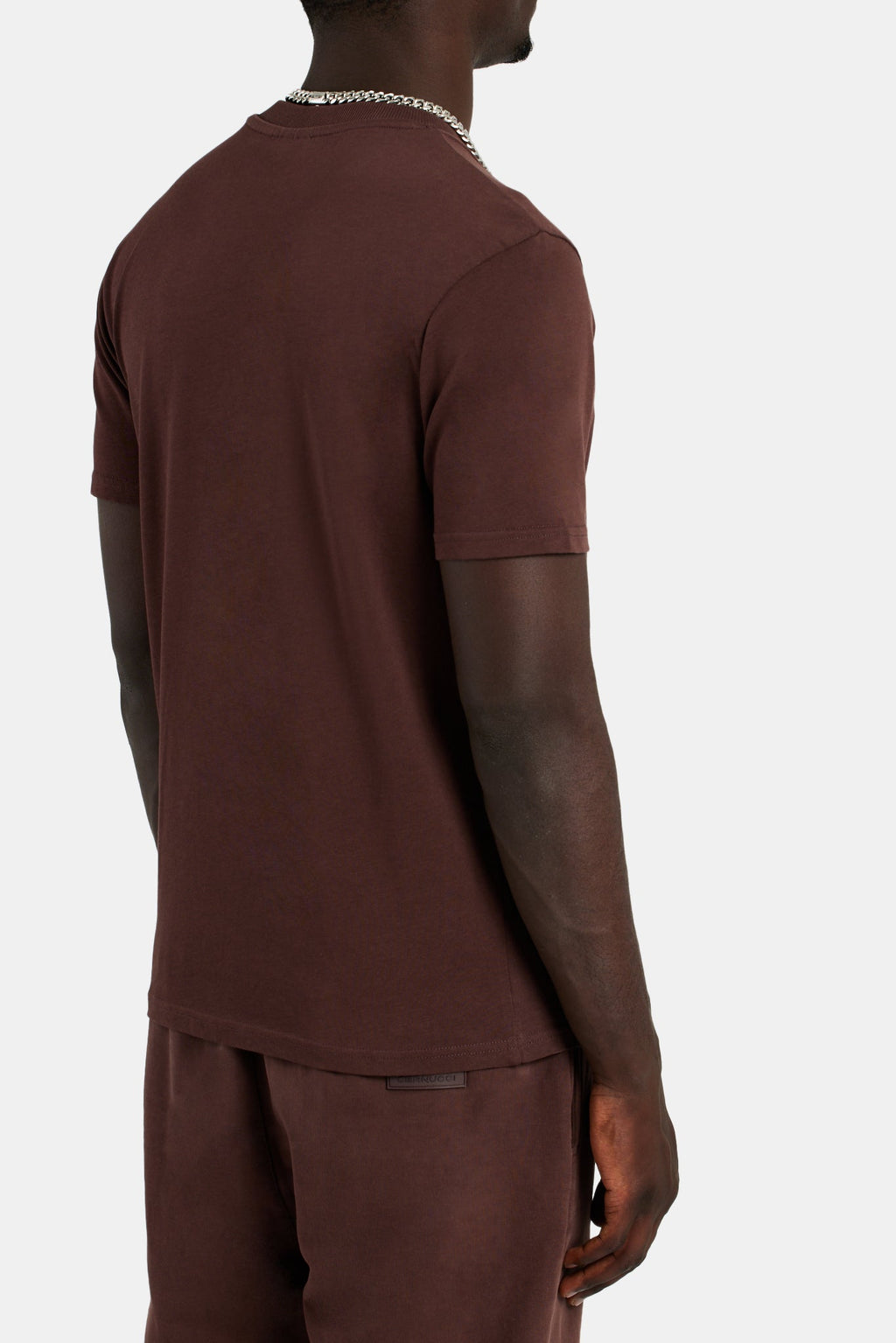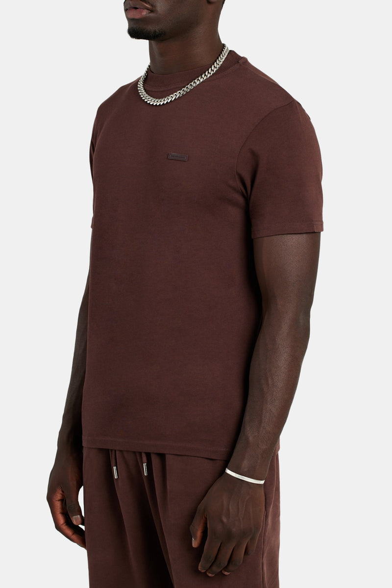 Chestnut short sleeve t-shirt in a slim fit. Premium mid weight soft touch cotton featuring tonal rubber badge on chest.