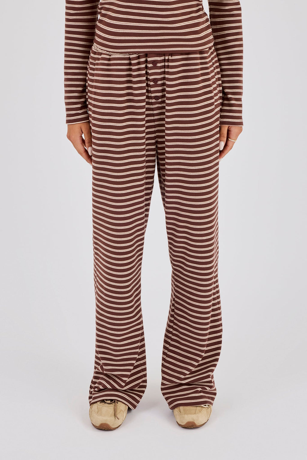 Soft touch striped trousers with button detailing. Pair with the matching soft touch top to complete the look.