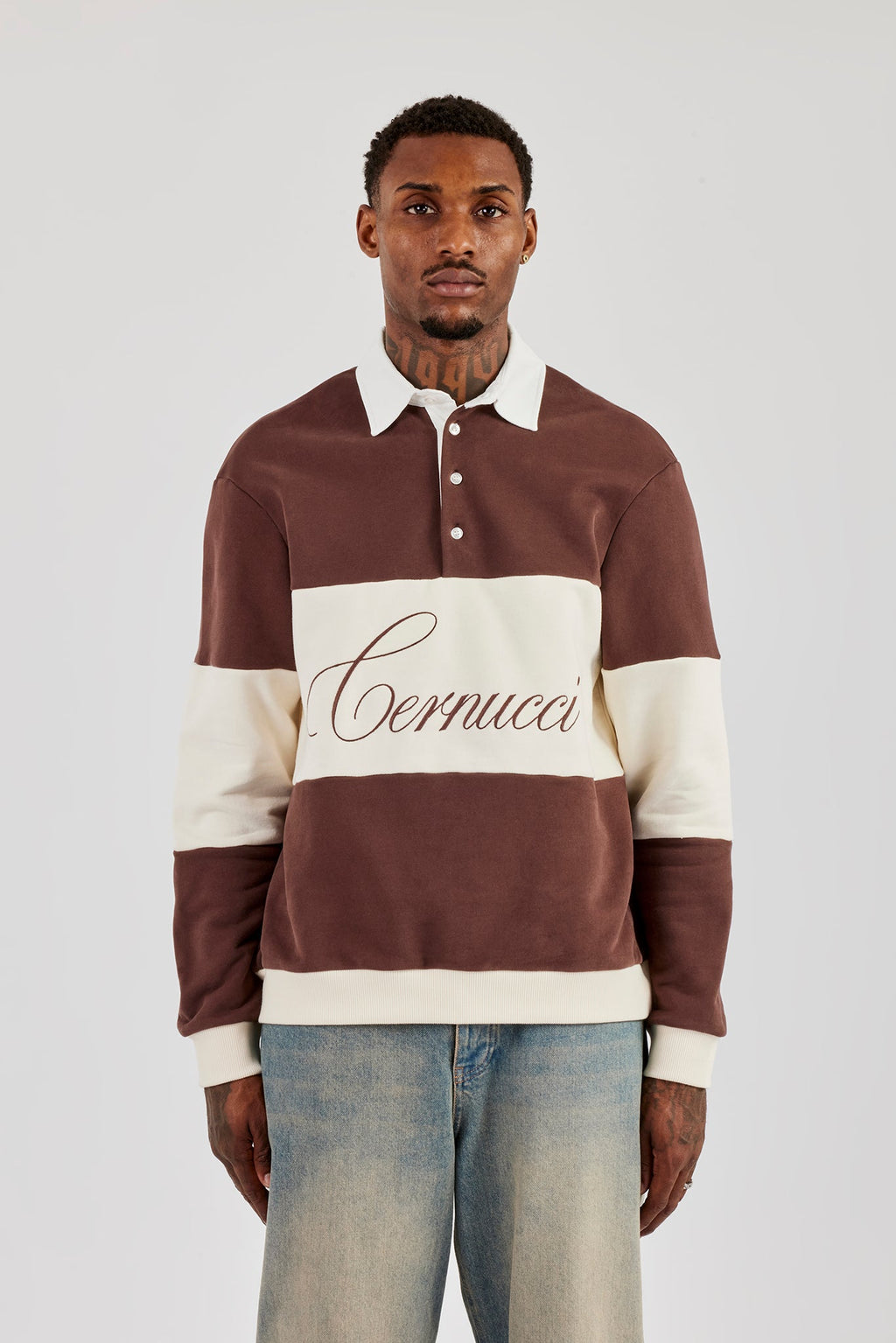 Long sleeve striped rugby sweatshirt with Cernucci branded embroidery & contrast collar