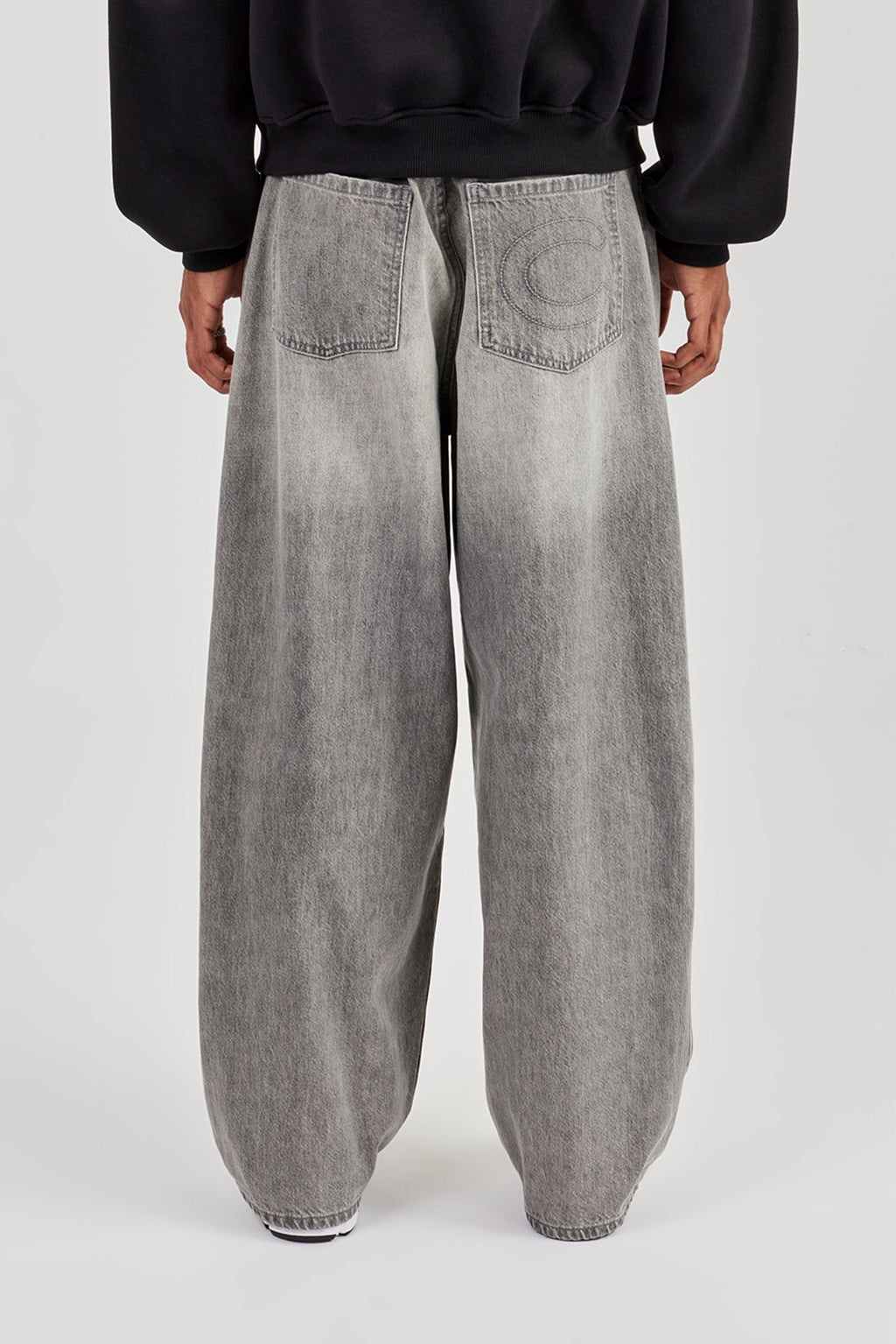 Super baggy grey wash jeans, in rigid cotton denim. Finished with branded trims.