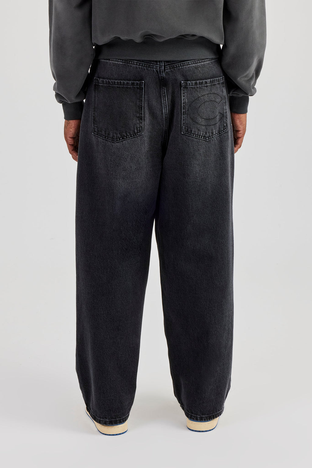 Washed black jeans, in rigid cotton denim. Super baggy fit finished with branded trims.