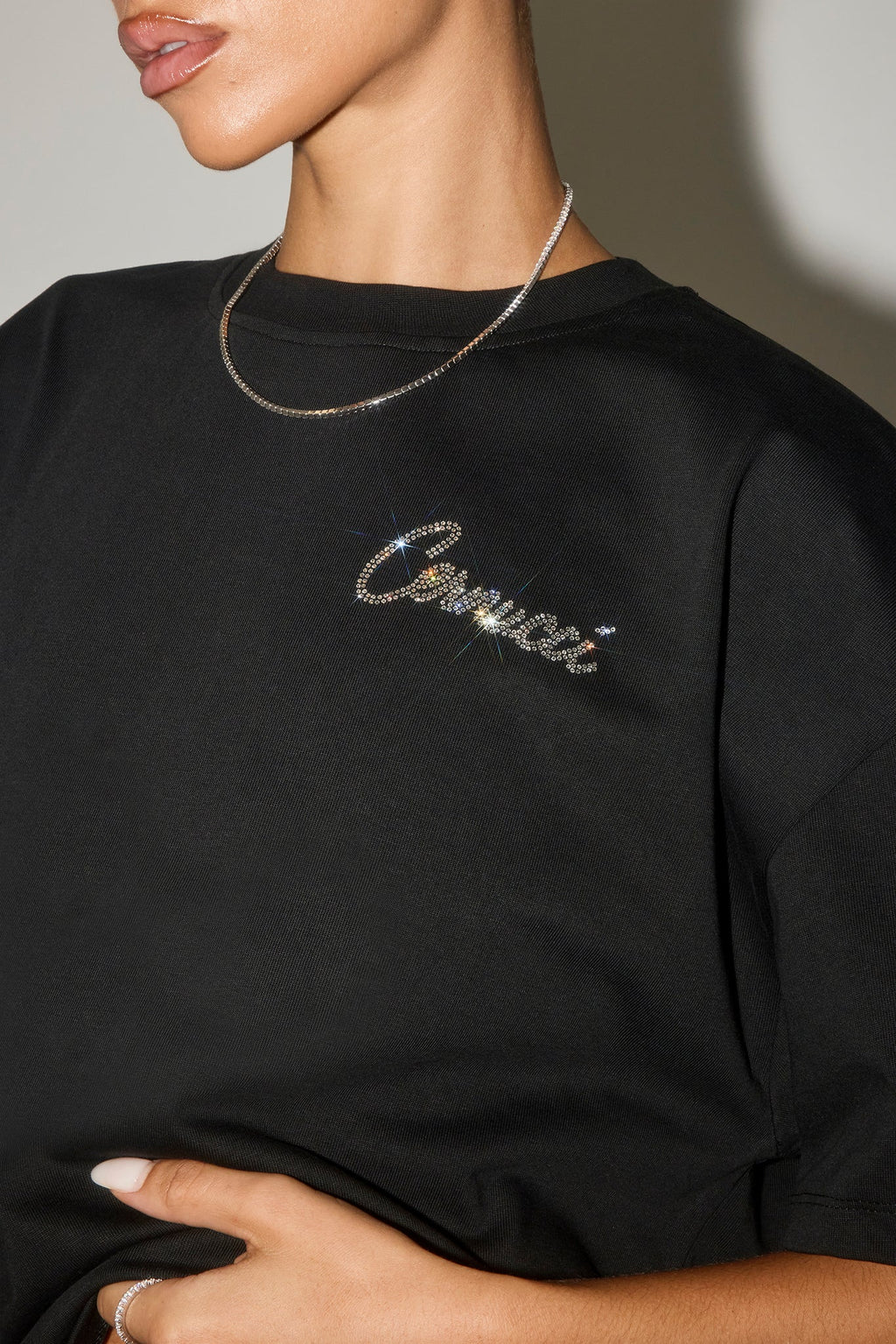 Black oversized fit t-shirt in a medium weight, soft touch cotton. Embellished with crystals by Swarovski®