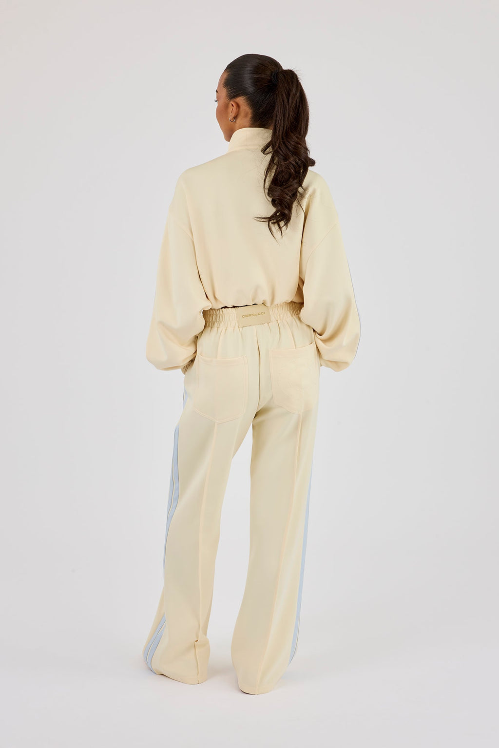 Taping Cropped Funnel Neck Jacket & Wide Leg Track Pant - Butter Yellow