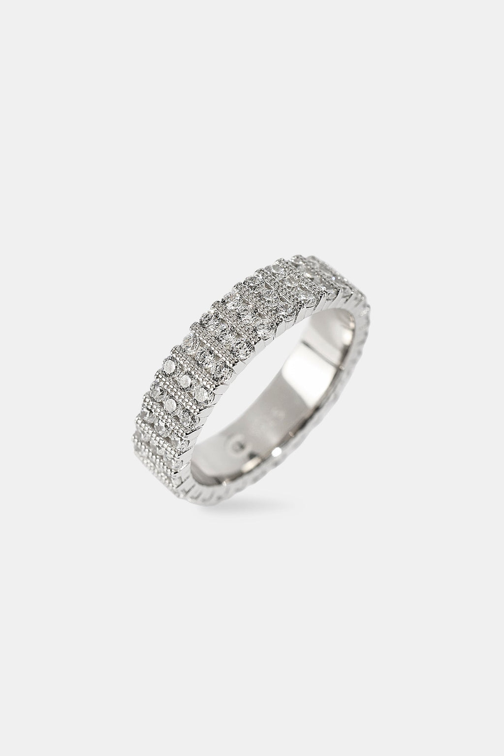 Our Triple Row Iced Band Ring brings a different vibe to your ring collection. For the ultimate flex, add in a chain or bracelet.