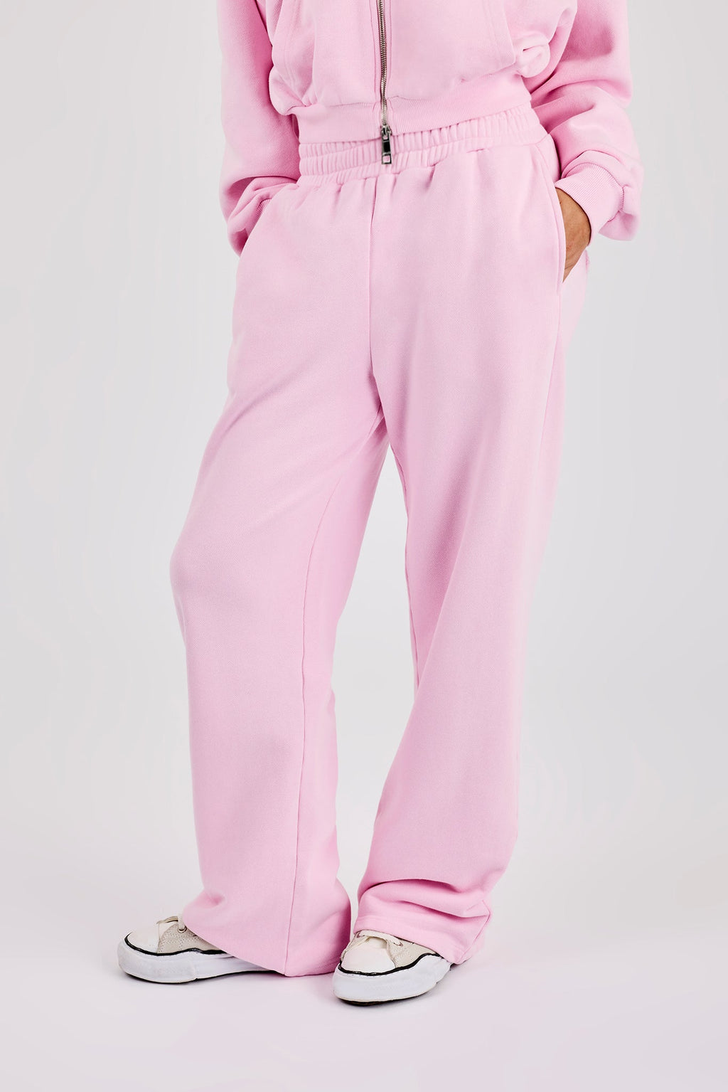 Pink wide leg jogger featuring applique logo. Premium soft touch jersey with Cernucci branded PU patch on centre back waistband.