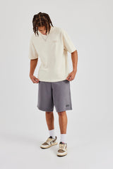 Grey washed jersey jort in a medium weight, soft touch cotton.