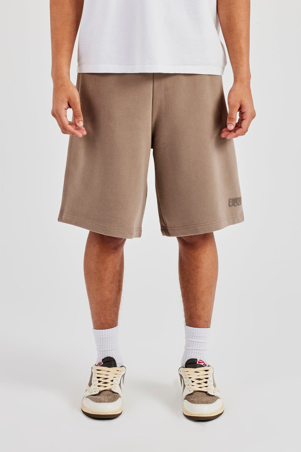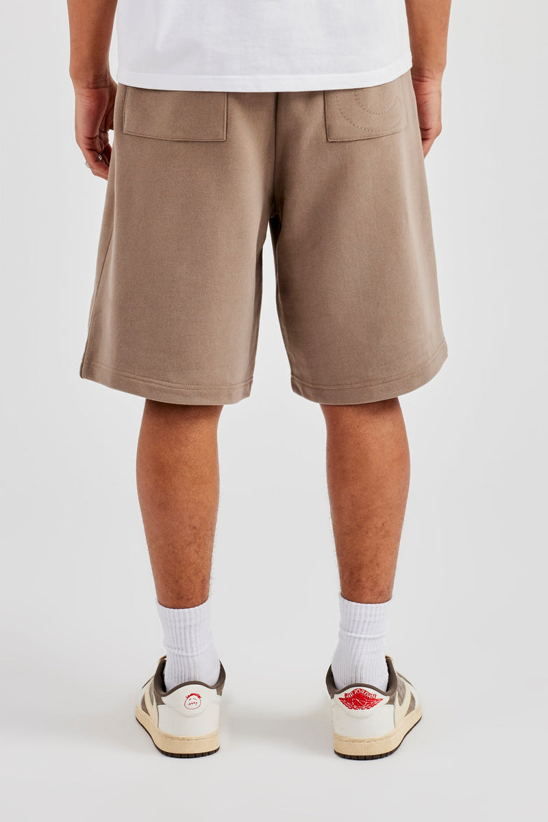 Taupe washed jersey jort in a medium weight, soft touch cotton, pair with our matching t shirt to complete the look