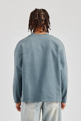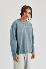 Blue long sleeve t-shirt featuring tonal embroidered logo. Our improved long sleeve tees have a relaxed fit and open cuff to each sleeve, finished with a ribbed collar in a medium weight cotton jersey.