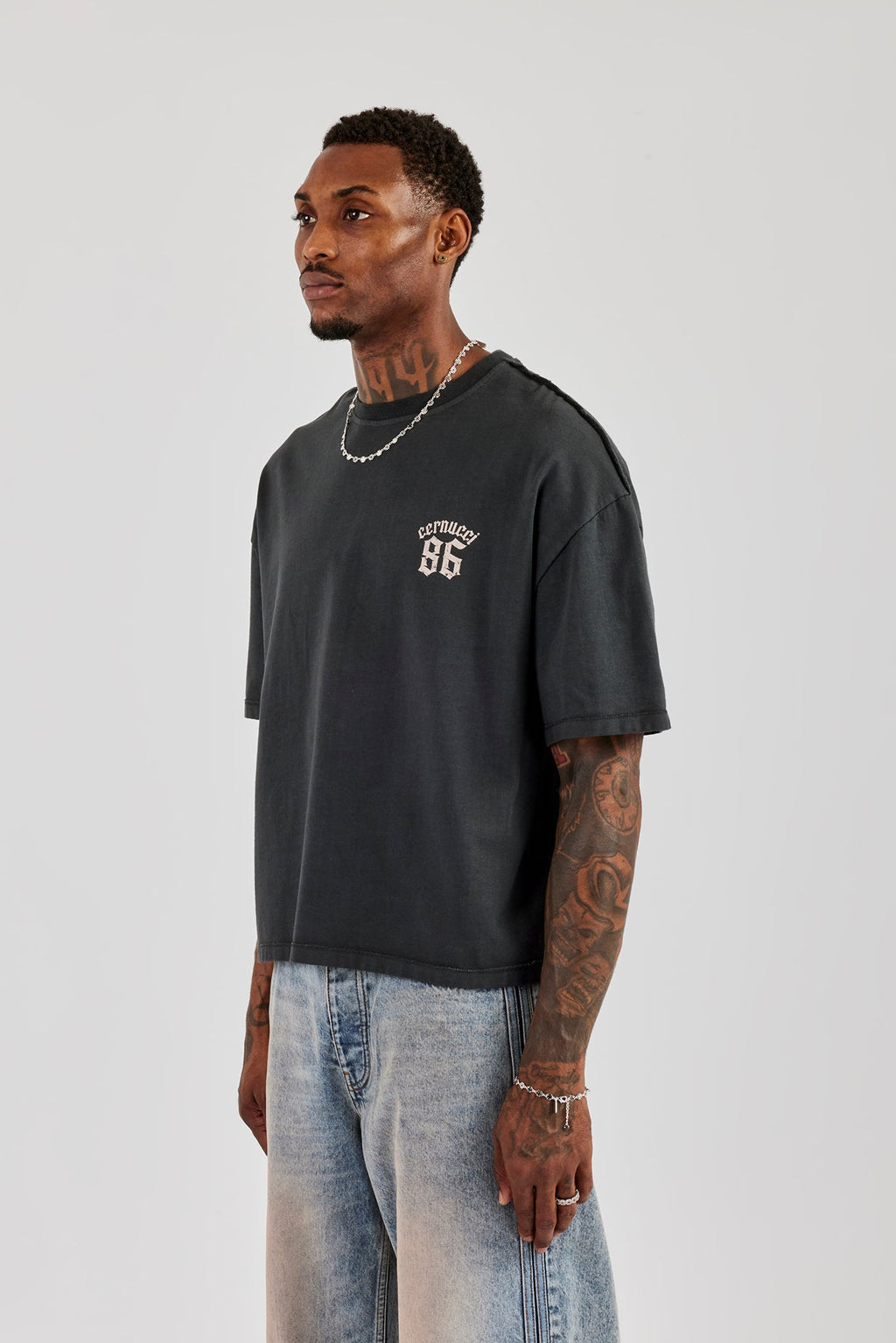 Washed printed graphic t-shirt featuring back print in a boxy fit.