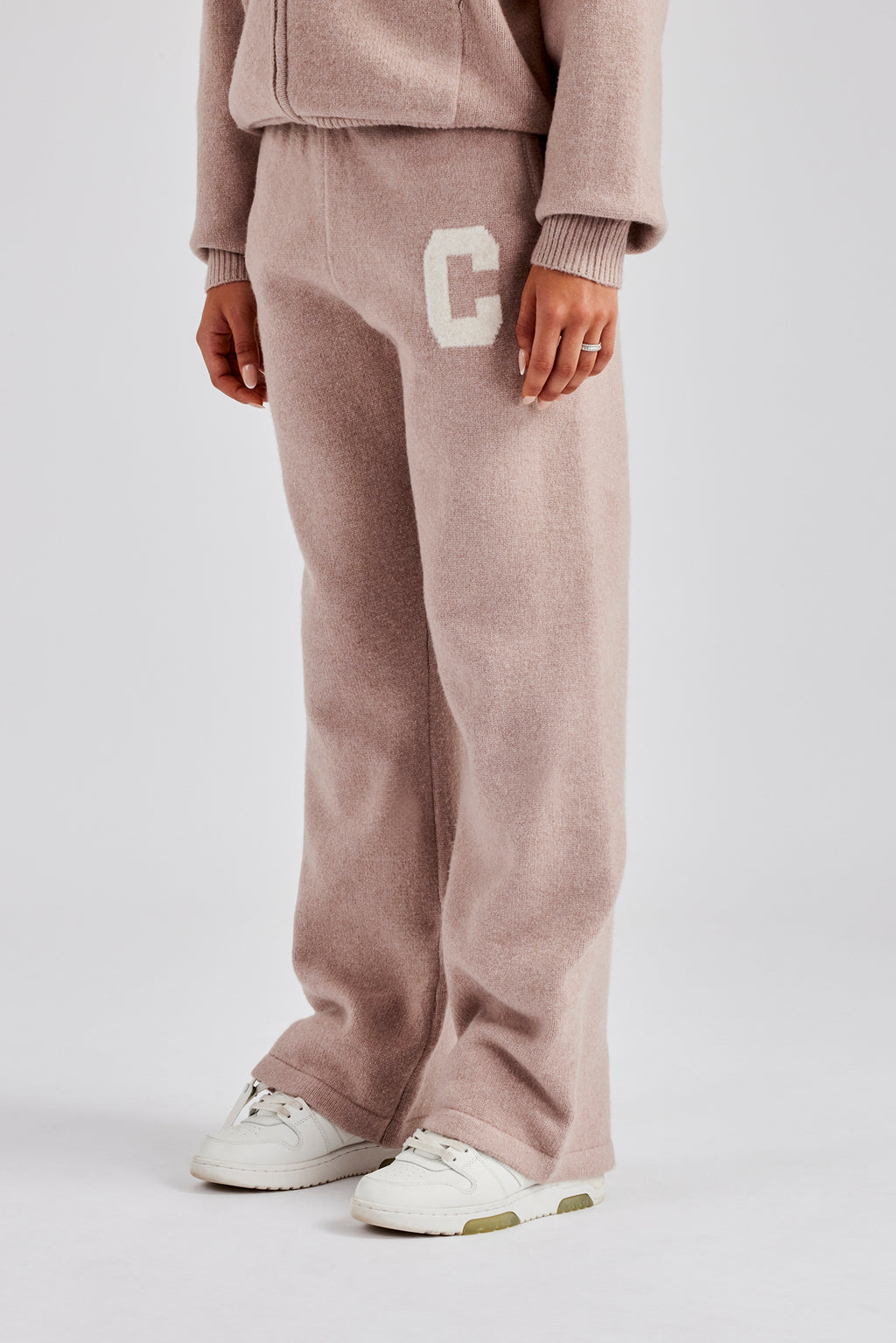 3Pink wide leg jogger in a soft touch knit with jacquard C logo.